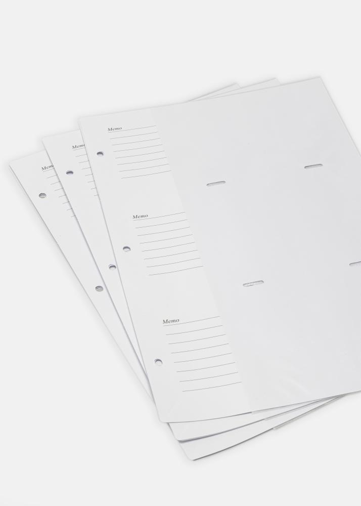 Albumlapok, amelyek illeszkednek a divatos KAILA Coffee Table Album XL album sorozatunkhoz. A fehér albumlapok 60 darab 10x15 cm-es képet tartalmaznak, és minden kép mellett van egy írómező, így leírhatja emlékeit és megjegyzéseit minden fényképhez.