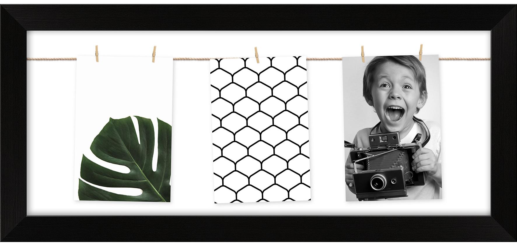A keret nyitott kialakítással rendelkezik, két vízszintes zsinórral, amelyre egyszerűen rögzítheted képeidet a mellékelt minicsipesz segítségével. Összesen 5 csipesz tartozik hozzá, így könnyen cserélheted és variálhatod fotóidat vagy illusztrációidat, ahogyan szükséges.