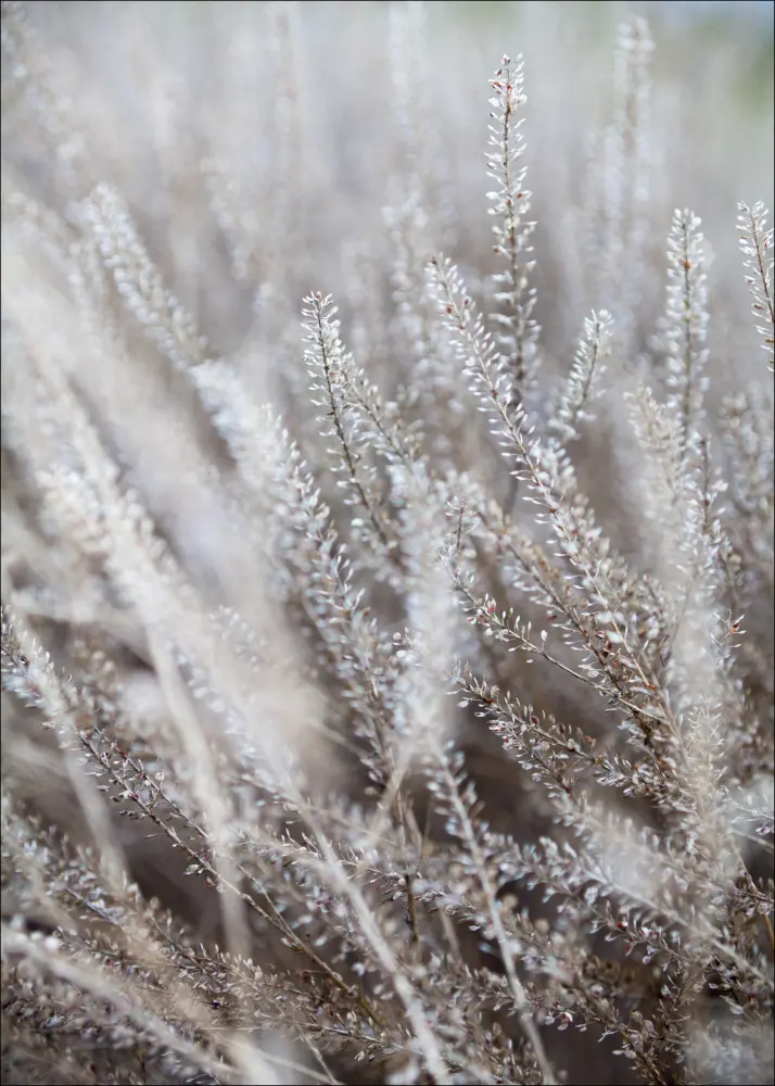 Egy téli poszter fagyos fűszálakkal. A törékeny fű minden szála megörökítve ebben a csodálatos és eléggé varázslatos képben. A szálak egyenesen állnak, de beleolvadnak a háttérbe, ahol az egész fűmező finoman hajladozik. Akaszd ezt egy meleg falra, hogy egy kis színt adjon neki.