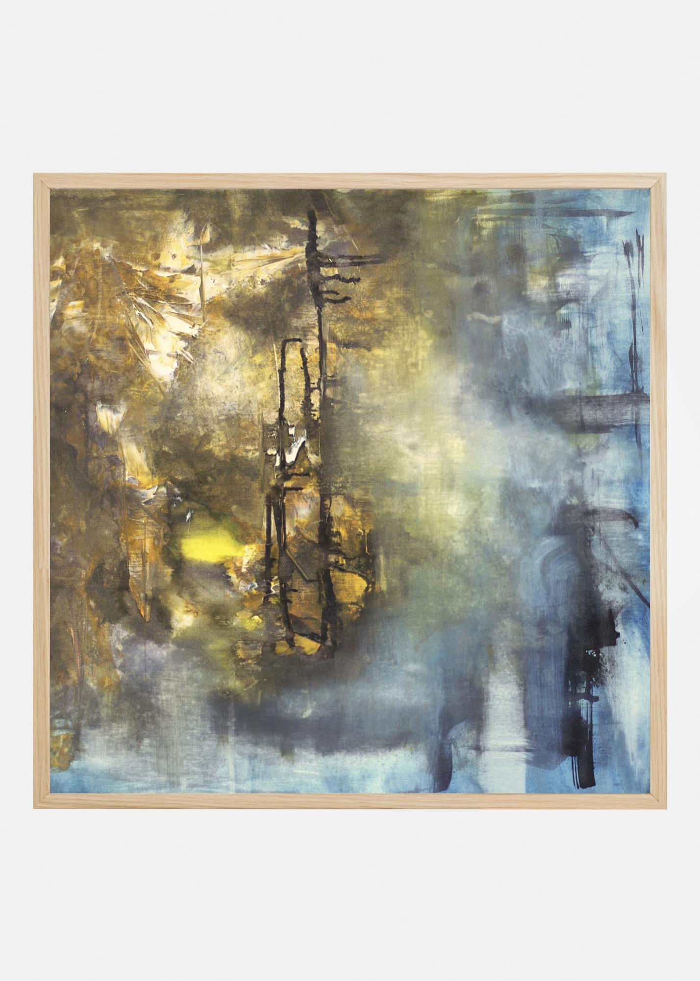 Egy absztrakt akrilfestmény sárga, kék és fekete árnyalataiban, Linn Westanbäck művész alkotása. Egy csodásan élénk poszter négyzet formátumban, amelyet előnyösen lehet kombinálni Linn Westanbäcks más alkotásaival.