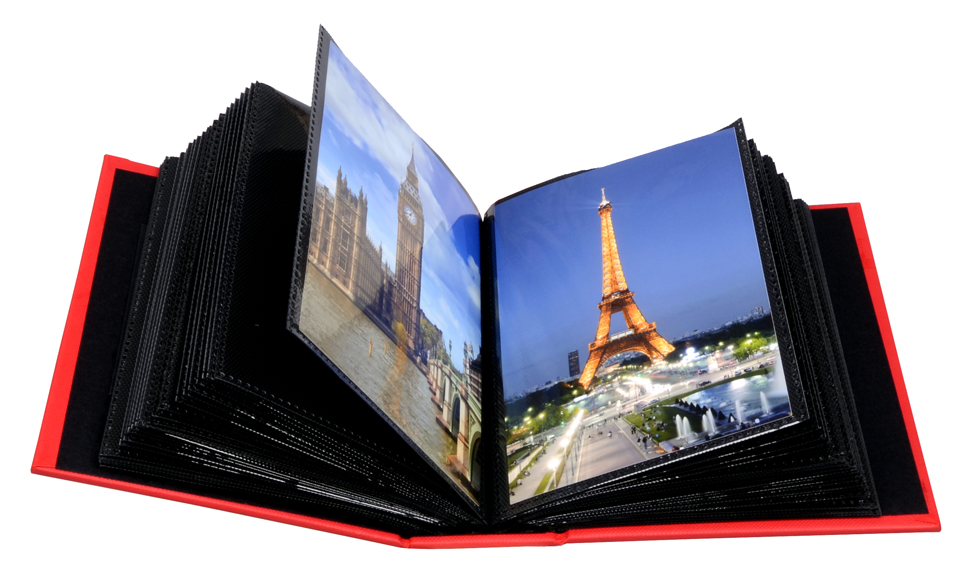 Az albumnak erős piros matt színű külső borítói vannak. A fekete albumpapírok oldalonként 1 kép elhelyezésére alkalmasak, és természetesen savmentesek.