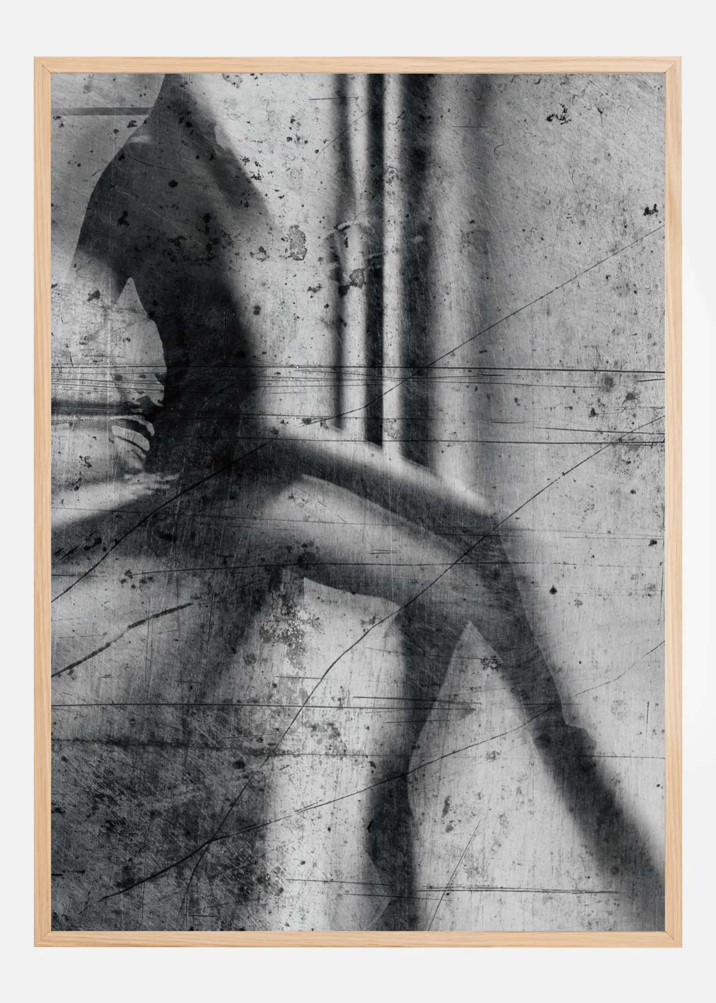 Egy absztrakt poszter egy nővel, aki egy falon ül. A fekete-fehér kép tele van vonalakkal és lágy élekkel, hogy megteremtse ezt a művészi, impresszionista alkotást. Akassza fehér falra a drámai hatásért, vagy párosítsa egy merész színnel további drámaiságért.