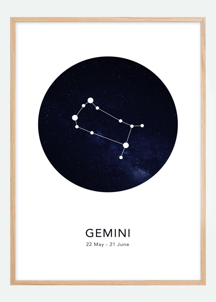 Ajándékozzon meg valakit, akit szeret, egy személyes képpel! Ez a stílusos poszter az Ikrek csillagjegyet ábrázolja fekete és kék csillagos ég háttérrel. Alul található a név az aktuális dátummal angolul.