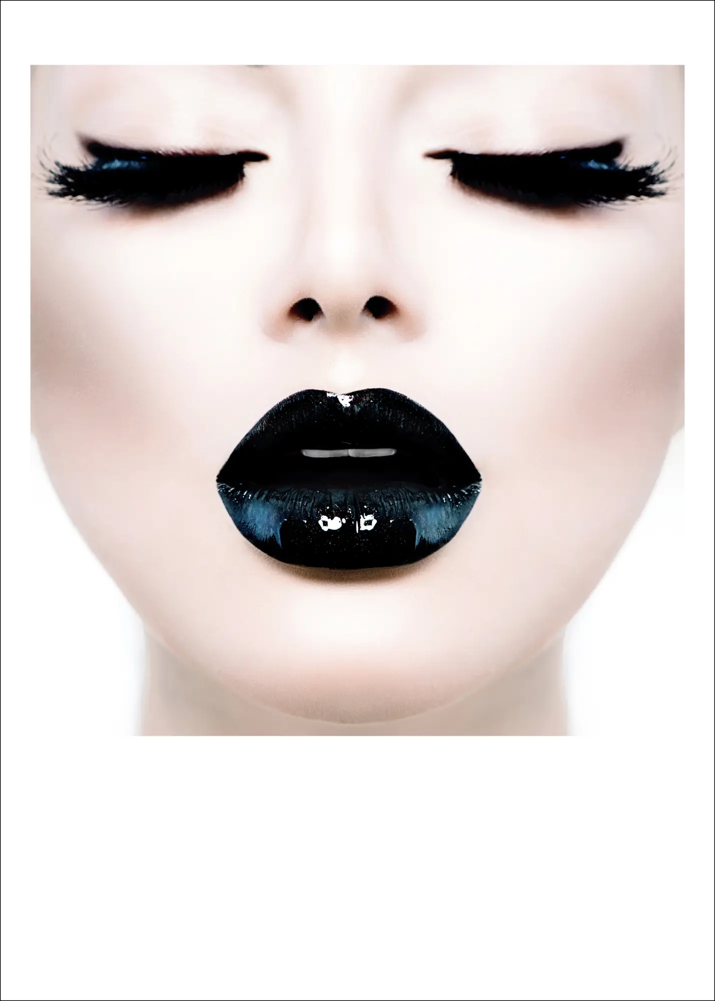 Egy csodálatosan kitűnő fotóművészeti poszter, a divat témájában! Itt találkoznak a fekete telt ajkak és a vastag fekete szempillák a porcelánfehér bőrrel és fehér háttérrel. Egy stílusos és kontrasztos poszter, könnyen kombinálható más kedvencekkel egy nagyobb képfalon.