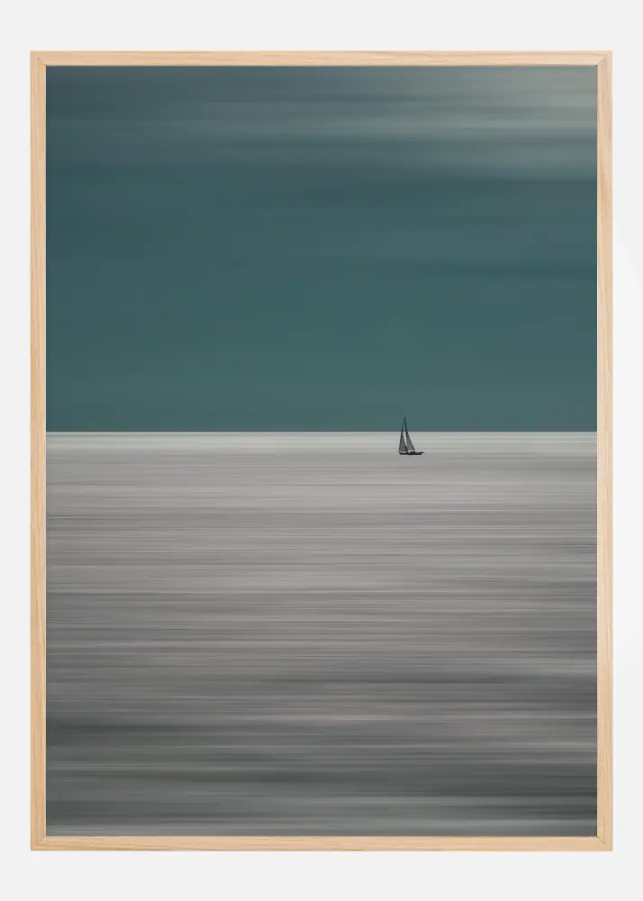 Egy fantasztikus, széles vászonposzter egy fehér tengerről és egy kis hajóról egy kékeszöld égbolt előtt. A nyitott terek végtelenség érzetét keltik. Veszítsd el magad ebben az epikus képben, amely otthonra hozva aprónak érezteti magad.