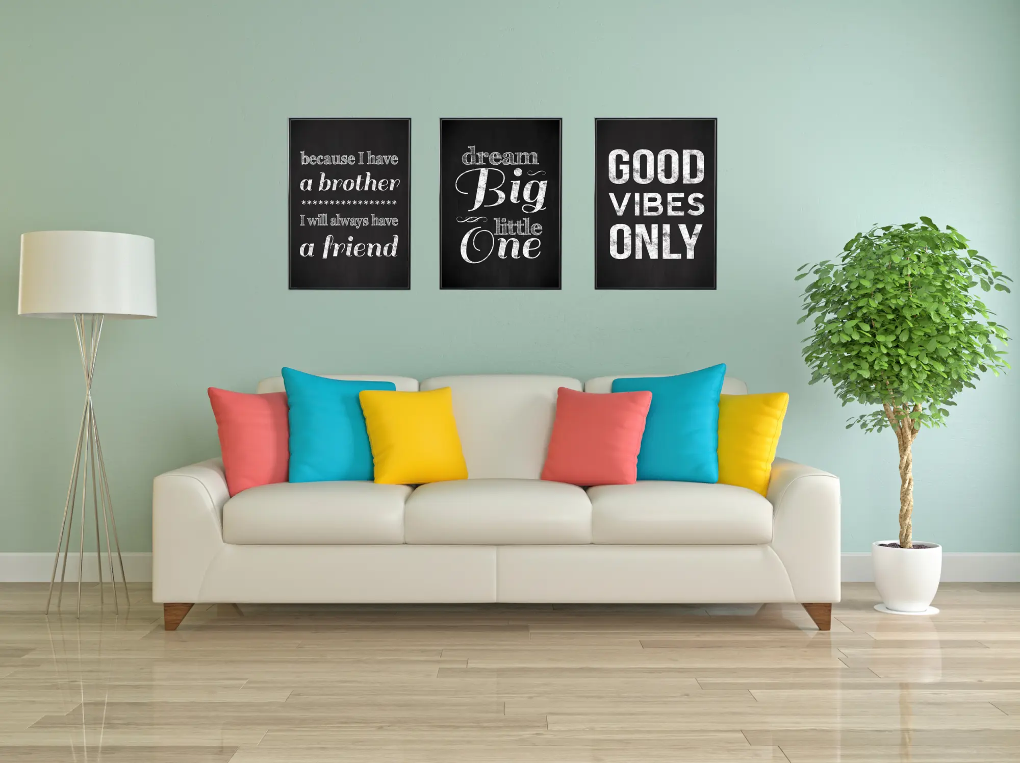Egy grafikus poszter a Good vibes only üzenettel, amely bármilyen környezetben meghatározhatja a hangulatot. A letisztult nyomat fehér melírozott modern betűtípussal, fekete háttérrel kombinálva stílusosan néz ki egy fekete keretben, amely hagyja, hogy a szöveg érvényesüljön. A poszter éppúgy illik az otthonba, mint a munkahelyre vagy nyilvános helyre, ahol szükség van egy emlékeztetőre a pozitív hozzáállásról. Szívesen lógassuk fel a posztert más szöveges motívumokkal együtt, hogy szép grafikus hatást teremtsünk a falon.