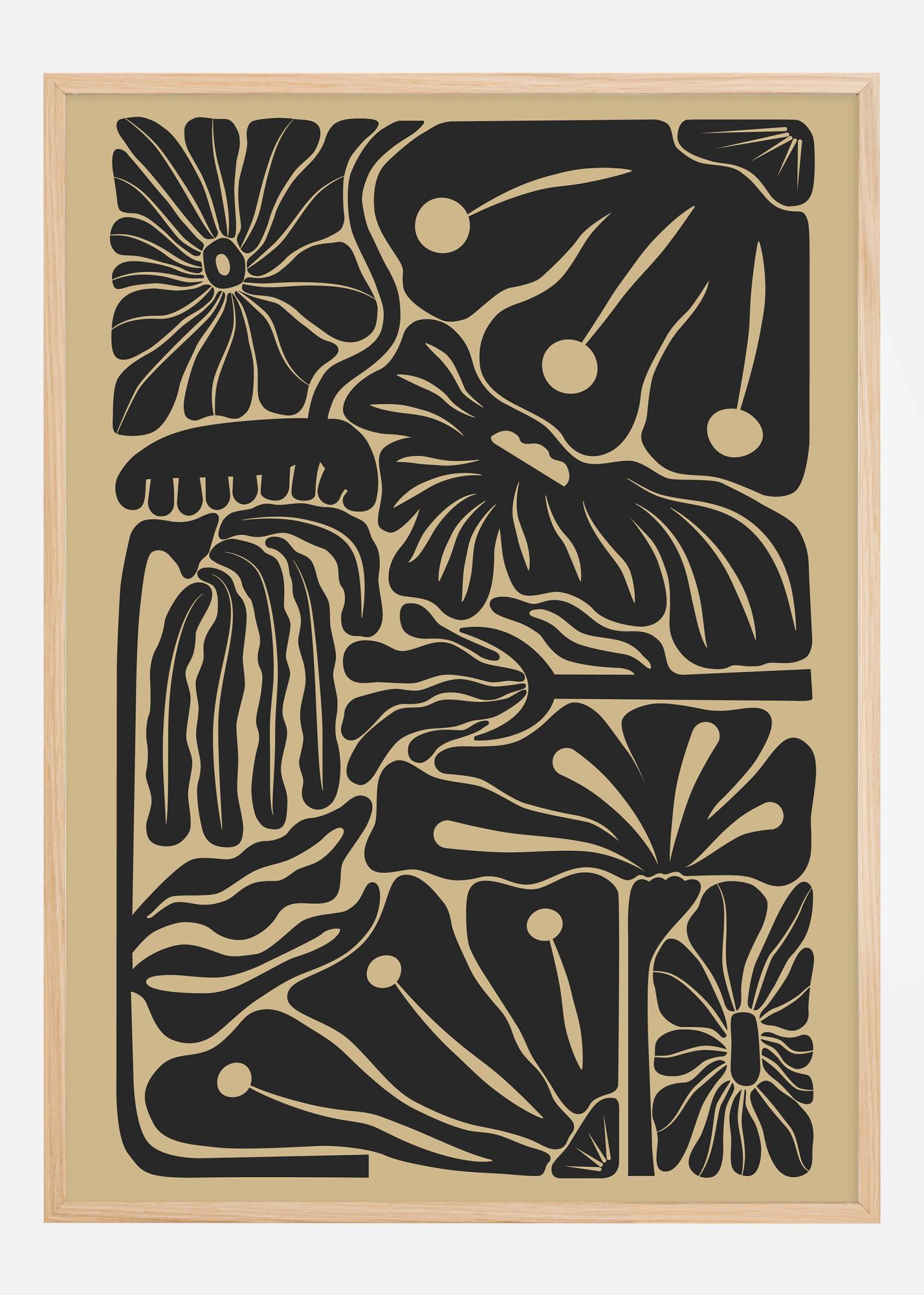 Ez a stílusos poszter modern és letisztult benyomást kelt, tökéletes a trendtudatos belsőépítész számára. A motívum absztrakt formák és vonalak sorozatát mutatja be, amelyek virágokra és levelekre emlékeztetnek egy organikus mintában. A monokróm kivitelezés merész fekete részletekkel egy bézs háttéren erős vizuális kontrasztot teremt, amely megragadja a tekintetet. Egy alkotás, amely remekül illik egy minimalista vagy skandináv stílusú enteriőrbe, és a természet érzetét adja anélkül, hogy vizuálisan túl sok helyet foglalna.