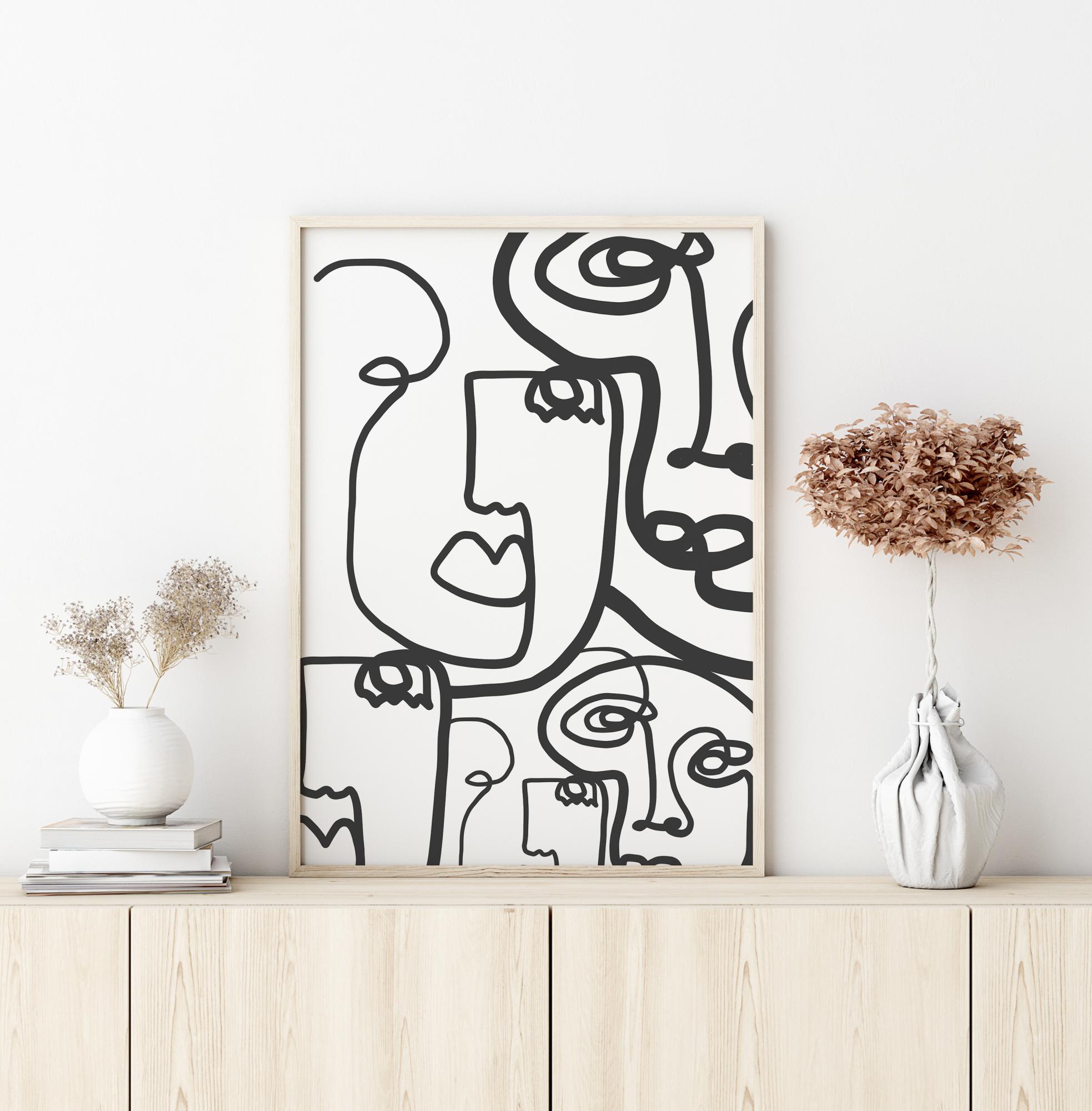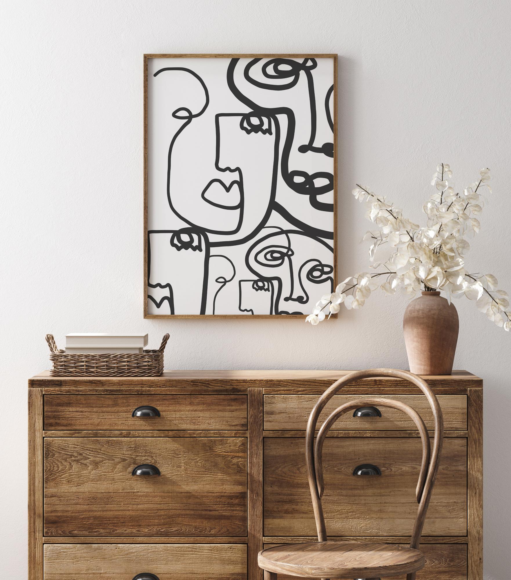 Egy drámai absztrakt poszter, sok karikatúraszerű arccal. Vastag és vékony fekete vonalak töltik meg ezt a képet, hogy öt különböző arcot hozzanak létre. A vonalak körbeforognak a fehér háttér körül, így meg kell koncentrálni, hogy megtaláljuk az összes arcot, amely elrejtőzik ebben az élénk képben.