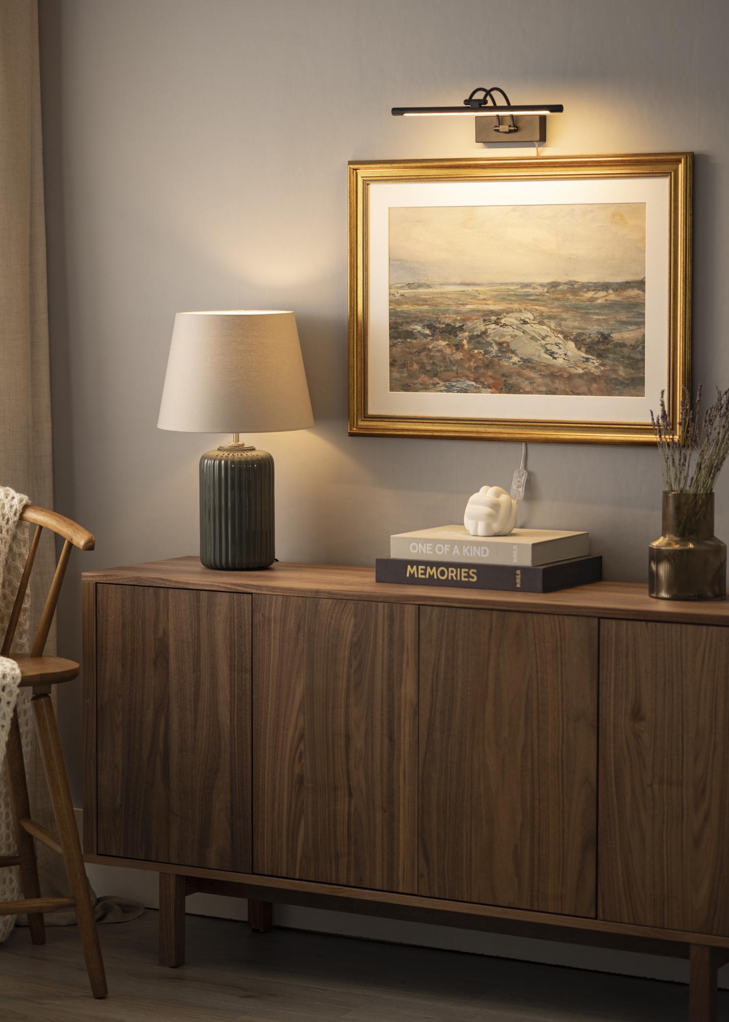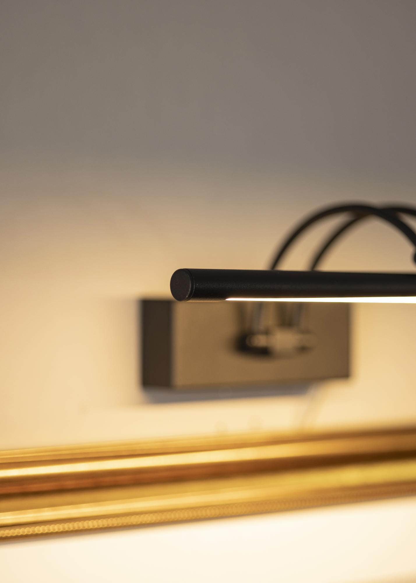 Képművészeti világítás modern svéd dizájnnal, amely 60-100 cm szélességű képekhez alkalmas. A lámpatest magassága 5 cm, hossza 37 cm, és 20 cm távolságra van a faltól. Erős, 720 lumenes LED-világításának köszönhetően nagyobb képek esetén is kellemes megvilágítást biztosít.
