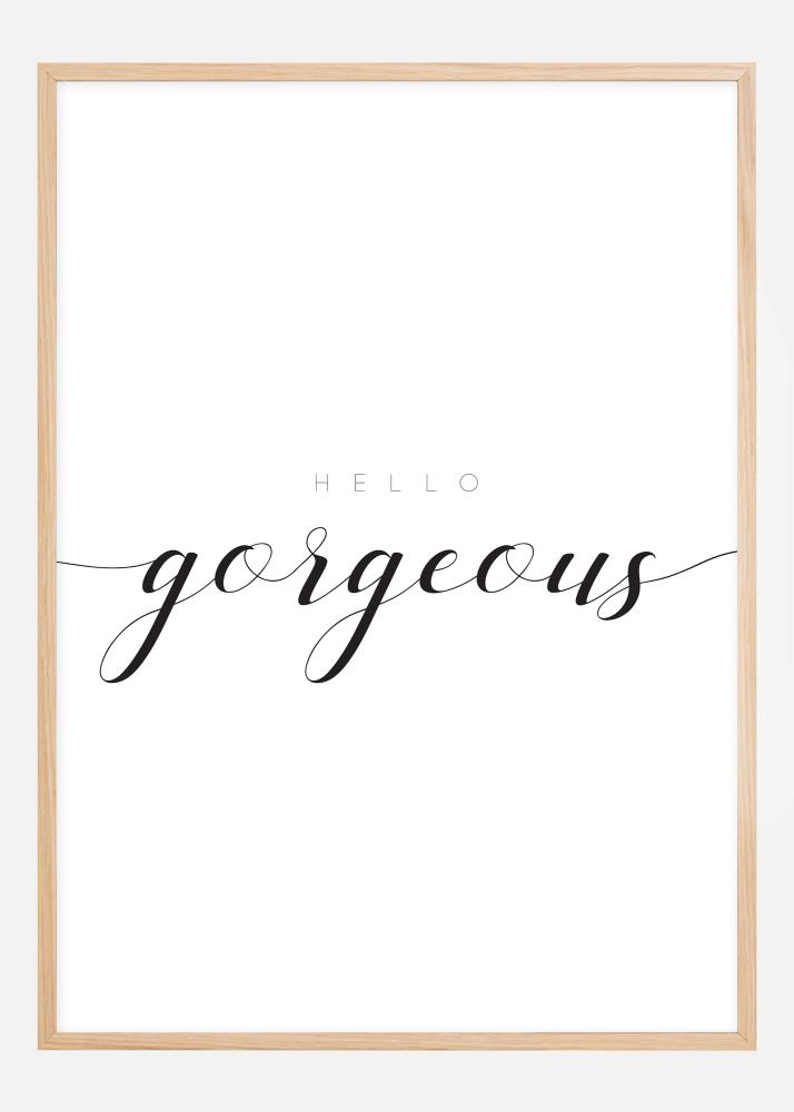 Egy egyszerű, de hatásos nyomat két egyszerű szóval. A fehér nyomaton középen egyszerű fekete betűk vannak, mindkét szónak más a betűtípusa. A "Hello" kis gyenge nagybetűkkel van írva, míg a "Gorgeous" egy merész, de elegáns stílusban. A tökéletes plakát, amit érdemes modern nappaliba akasztani.