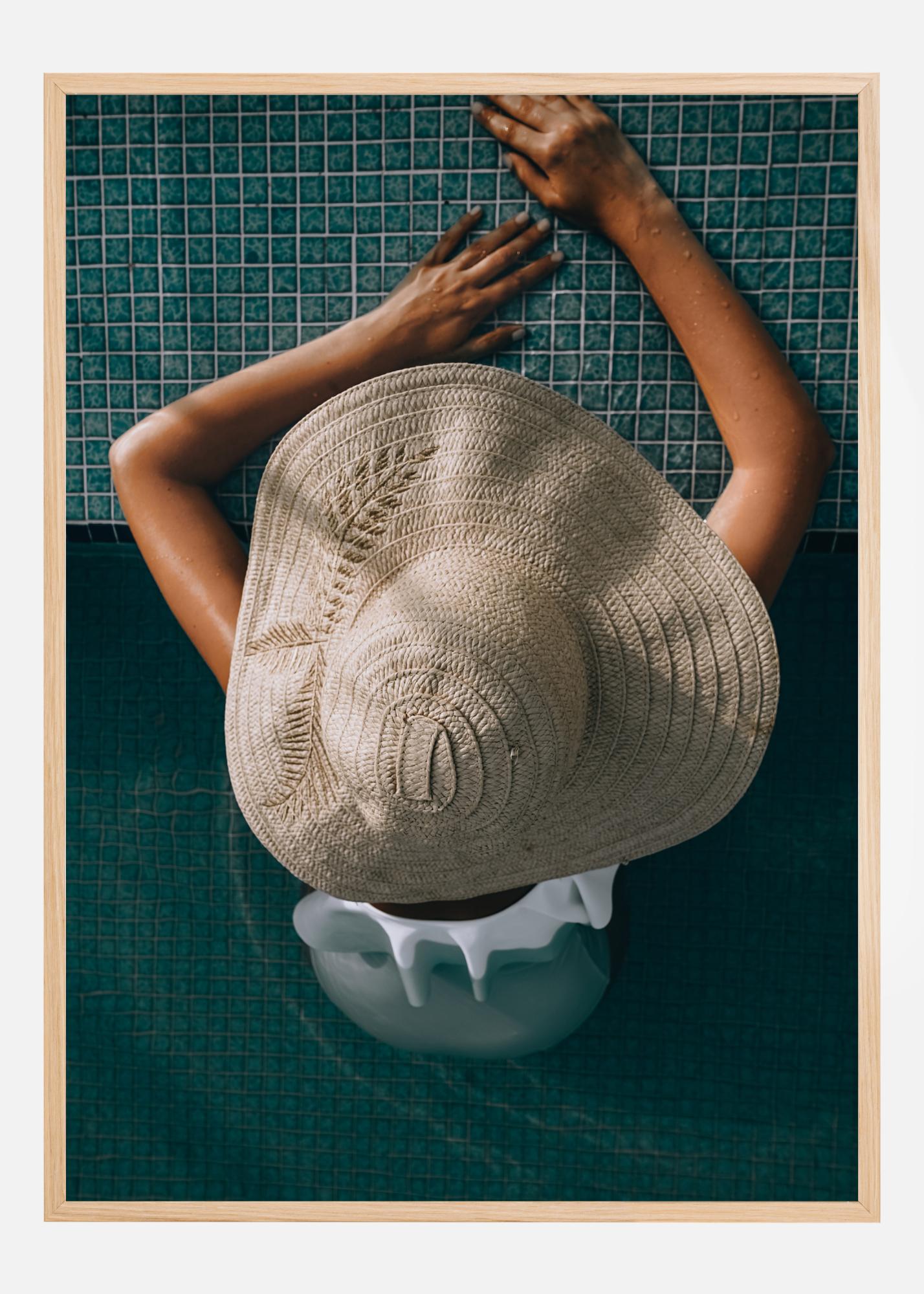 A kalap részletgazdagsága és a tükröződő vízfelszín, a lágy árnyékokkal és napos hangulattal együtt, a lusta nyári napok és hosszú, kellemes pihenőidők érzetét keltik. Ez egy ideális poszter a fürdőszobába, egy spa-szerű térbe, vagy bárhová, ahol pihenést és a mindennapokból való menekülést szeretnénk megteremteni.