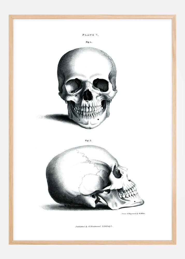 Ne félj kitenni kissé makabra motívumú posztereket a berendezésnél - minden attól függ, mivel kombinálod őket! Ez a csodálatos poszter egy régi, a 19. században kiadott tankönyvből származik. Az illusztrátor neve William Miller volt, és sikeres metsző volt. A motívum egy emberi koponyát ábrázol elölről és oldalról nézve, nagyon jól kidolgozott részletekkel. A motívum alatt megtalálja a metsző nevét, valamint a kiadóval kapcsolatos információkat. Mivel a poszter fekete-fehér, ugyanolyan jól mutat egy fekete keretben, mint egy színesebben. Több különböző méretben kapható, így könnyen találhat olyat, amelyik illik a te otthonodba.