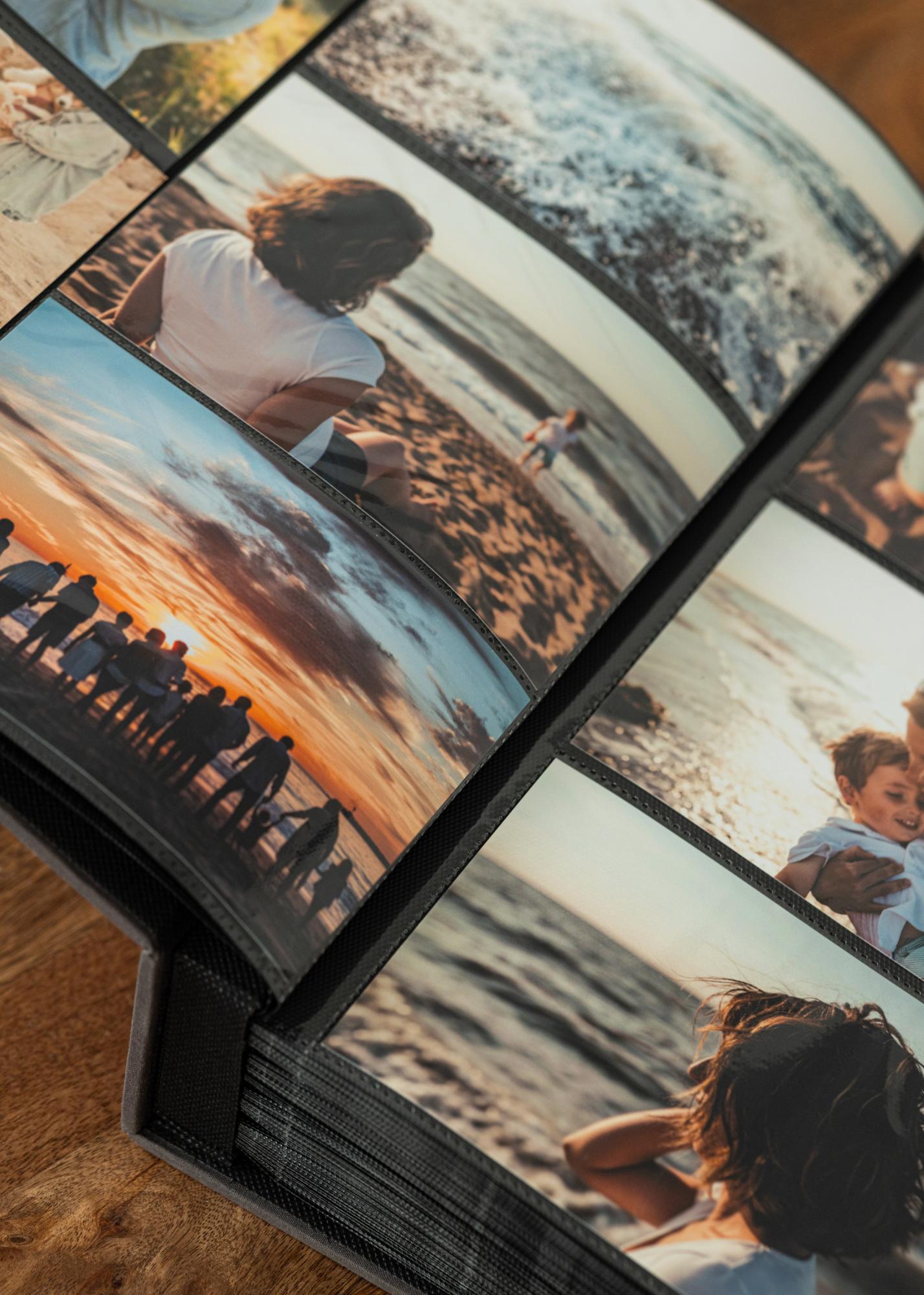 Az album 200 oldalas, ami 100 lapnak felel meg, és praktikus fotózsebekkel van felszerelve, amelyek megkönnyítik képeid ragasztó vagy rögzítő sarkok nélküli elhelyezését. A fekete oldalak gyönyörű kontrasztot teremtenek a fényképeiddel, ízlésesen kiemelve azok színeit.
