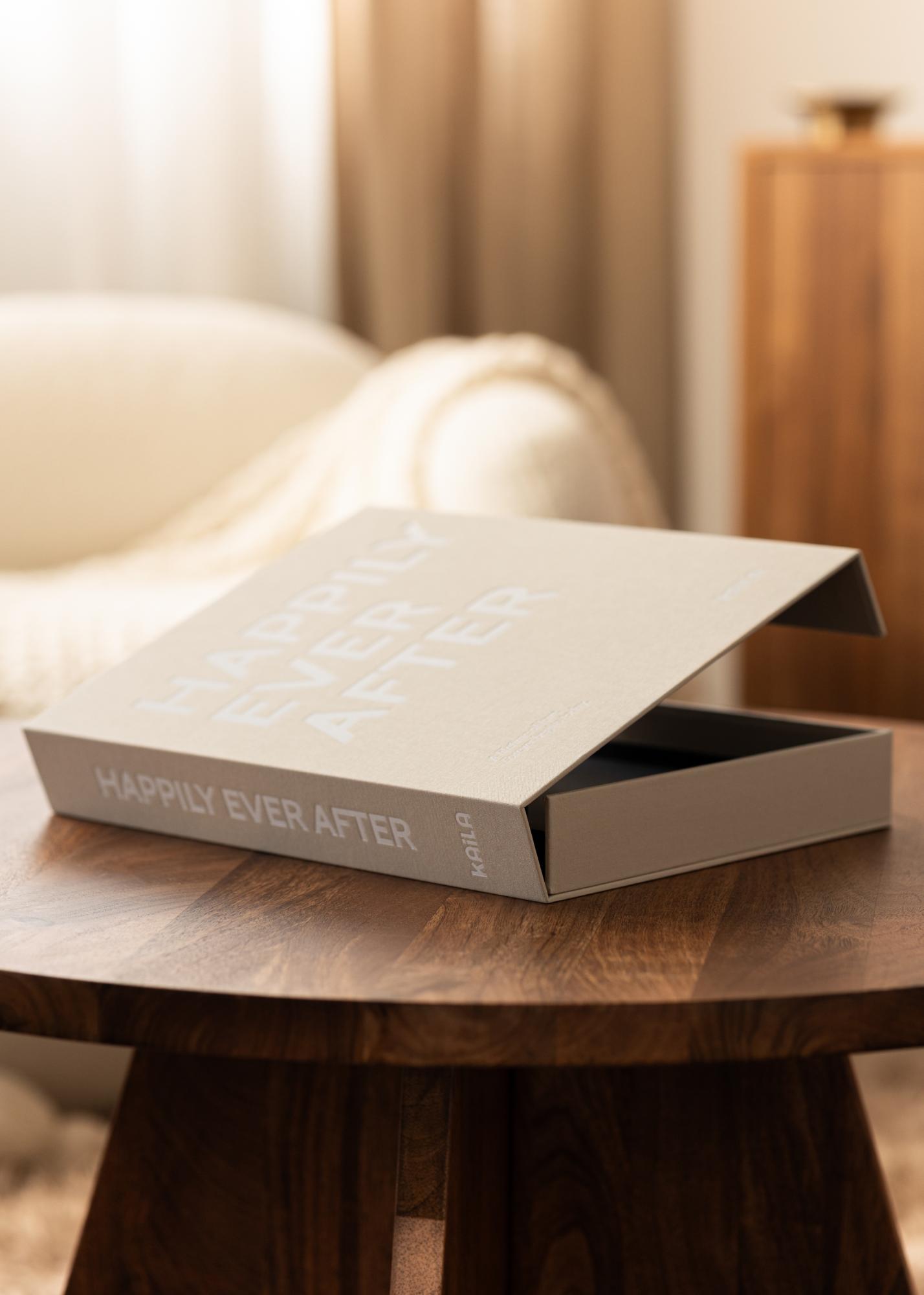 KAILA Happily Ever After egy exkluzív és elegáns esküvői album elegáns krémszínű kivitelben. Kávézóasztal-albumként van megtervezve, így gyönyörű lakberendezési elem, miközben megőrzi legemlékezetesebb pillanataidat. Az album 60 fekete, savmentes oldalt tartalmaz, amelyeken stílusosan rögzítheted az esküvői képeidet. Tökéletes egy időtálló emlékgyűjtemény létrehozására a nagy napról.