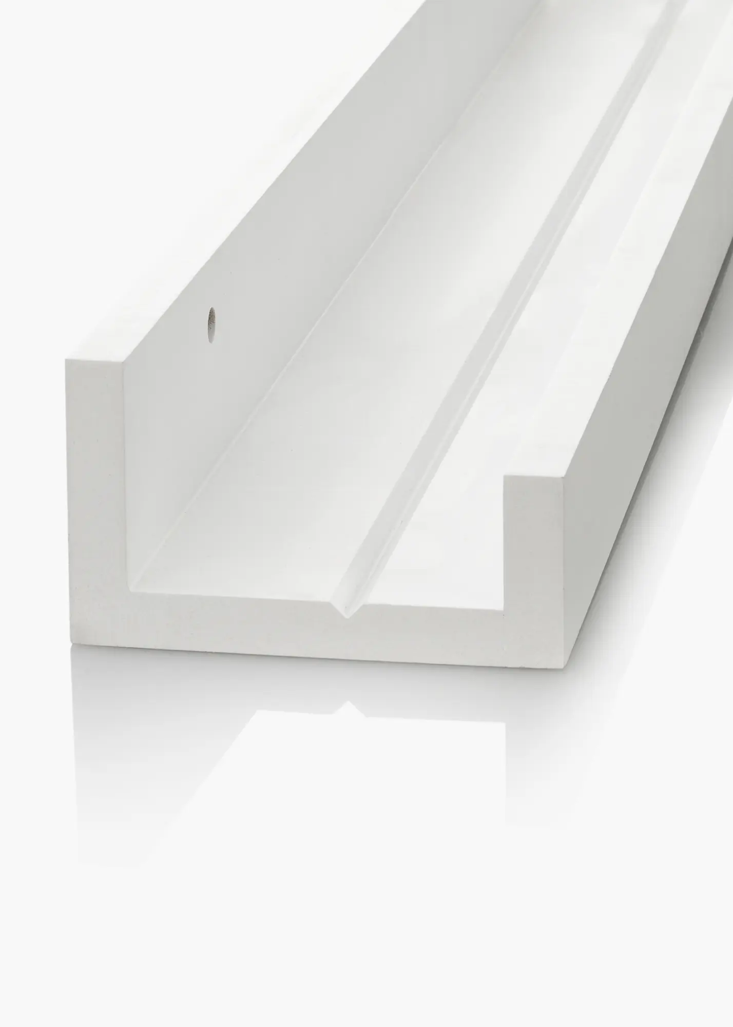 Egy praktikus képkeretpárkánnyal könnyedén és elegánsan bemutathatja és változtathatja a képeit! Ez az elegáns képkeretléc MDF-ből készült és fehérre festett, gyönyörű, félfényes felülettel. A dizájn letisztult egyszerű, egyenes vonalakkal és időtlen, minimalista érzéssel. A polc közepén egy kimart vájat fut végig, amely támaszt nyújt a képeknek, és tökéletes szögben tartja őket, miközben a falnak dőlnek. A képkeretléc előfúrt lyukakkal rendelkezik, és a csomag tartalmazza a megfelelő csavarokat és tipliket, amelyek még egyszerűbbé teszik az egészet!