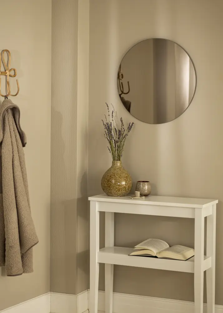 Ez a kerek tükör vékony, keret nélküli kialakítású, amely elegáns és exkluzív megjelenést kölcsönöz, és feldob bármely szobát. A bronz árnyalatú tükörüveg gazdag és otthonos megjelenést kölcsönöz a falitükörnek, amely tökéletesen illeszkedik a modern otthonokba. A tükör a KAILA kerek, bronz színű tükrök sorozatába tartozik, és hét különböző méret közül választhatja ki az otthonához legjobban illőt. Ennek a modellnek az átmérője 50 cm. Könnyedén felszerelheti a tükröt az előszobában vagy a nappaliban a falitartó segítségével.
