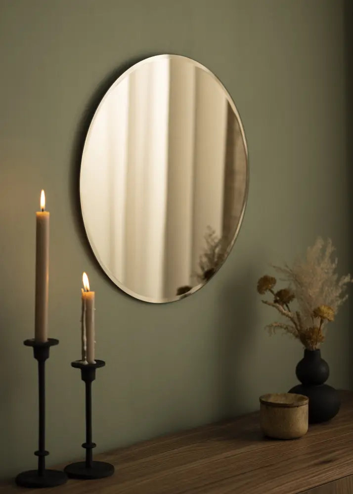 Egy sötétebb bronzos árnyalatú tükör exkluzív elemmé válik az otthonában. Ez a fali tükör lágy kerek formával és elegáns bronzos tükörüveggel rendelkezik. Az exkluzív összképet a csiszolt fazettázott él teszi teljessé. A tükör önmagában is jól mutat, de más méretű és árnyalatú tükrökkel együtt is.