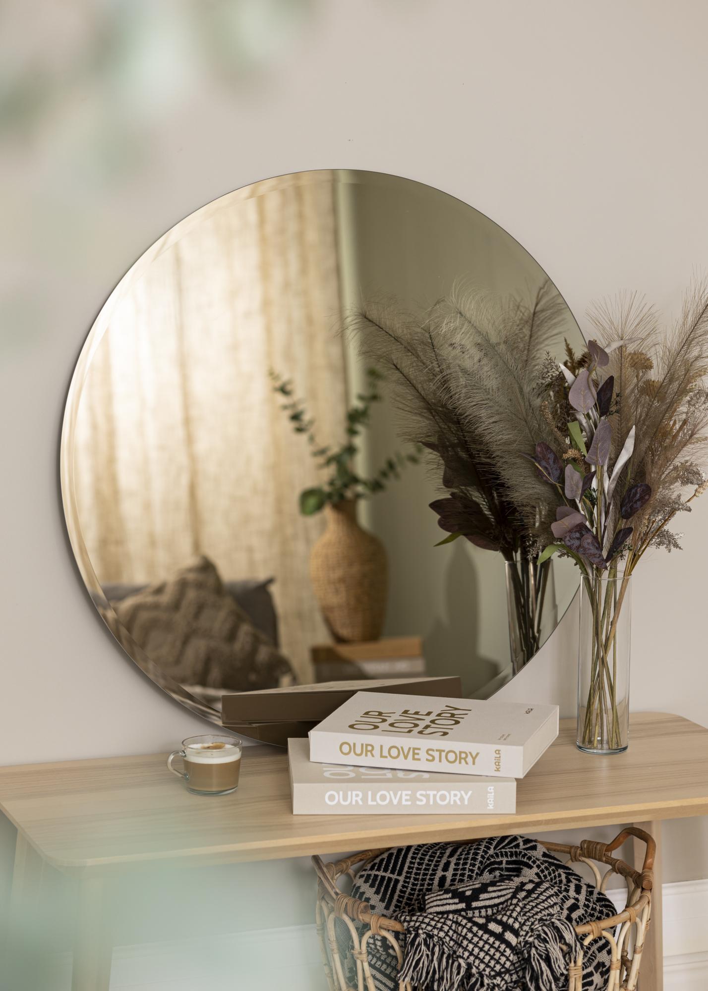 Egy sötétebb bronz árnyalatú tükör exkluzív eleme lesz otthonának. Ez a fali tükör lágy kerek formájú és elegánsan bronzozott tükörüveggel rendelkezik. Az exkluzív összképet a csiszolt fazettaszél teszi teljessé. A tükör önmagában is jól mutat, valamint más tükörrel különböző méretben és színárnyalatban kombinálva is.