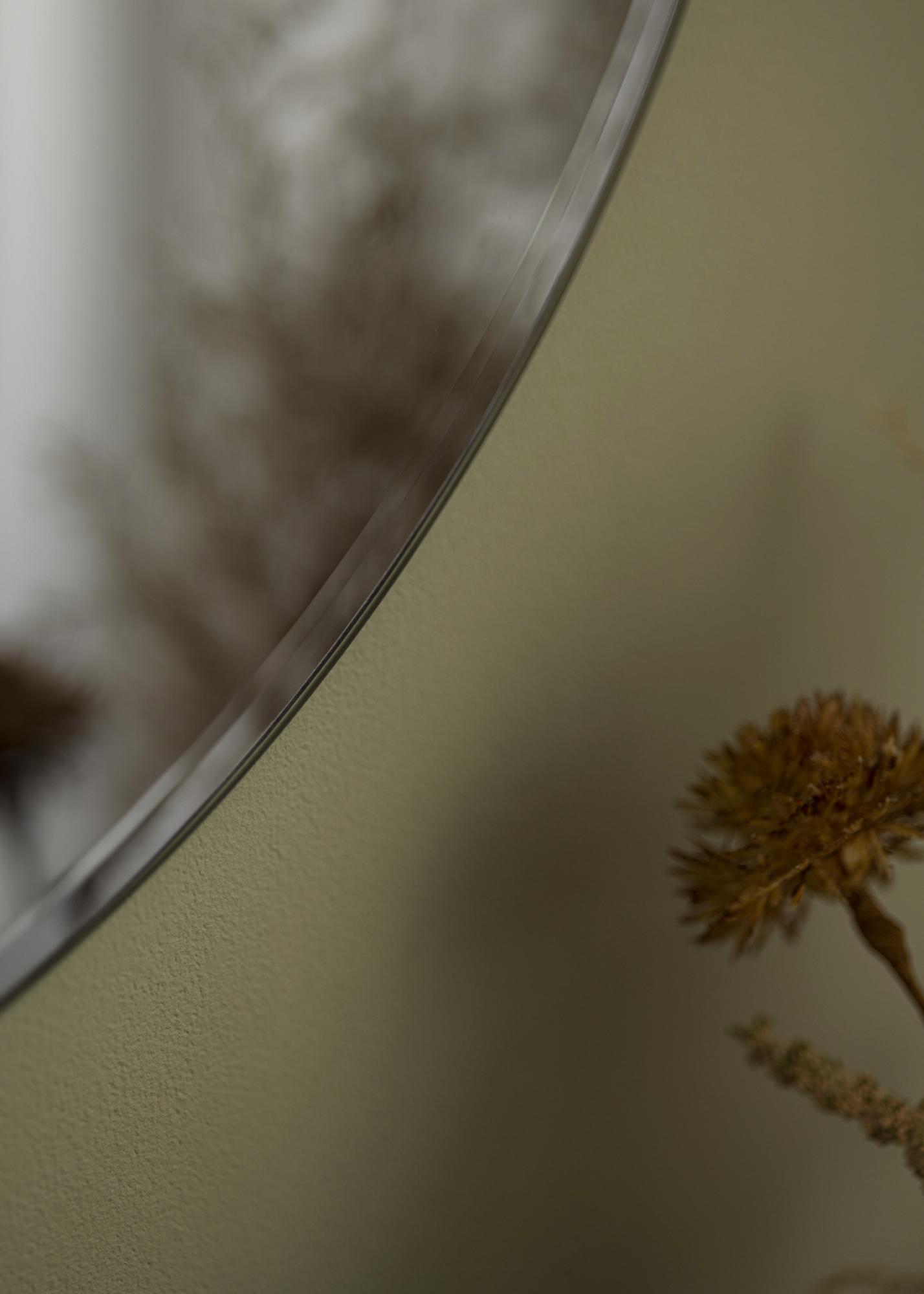 Egy tónusos tükörüveggel ellátott tükör kiváló belsőépítészeti elem, amely sok karaktert hordoz. Ez egy kerek változat szürke tónusú üveggel – egy tompább árnyalat, amely luxus, szállodai hangulatot áraszt. A szürke szín kitűnően illik a sötétebb stílusban berendezett otthonokba, de mutatós kontrasztot alkot világos falakon is. Ez a falitükör a fényt úgy veri vissza, mint egy hagyományos tükör, de lágyabb fényárnyalatban.
