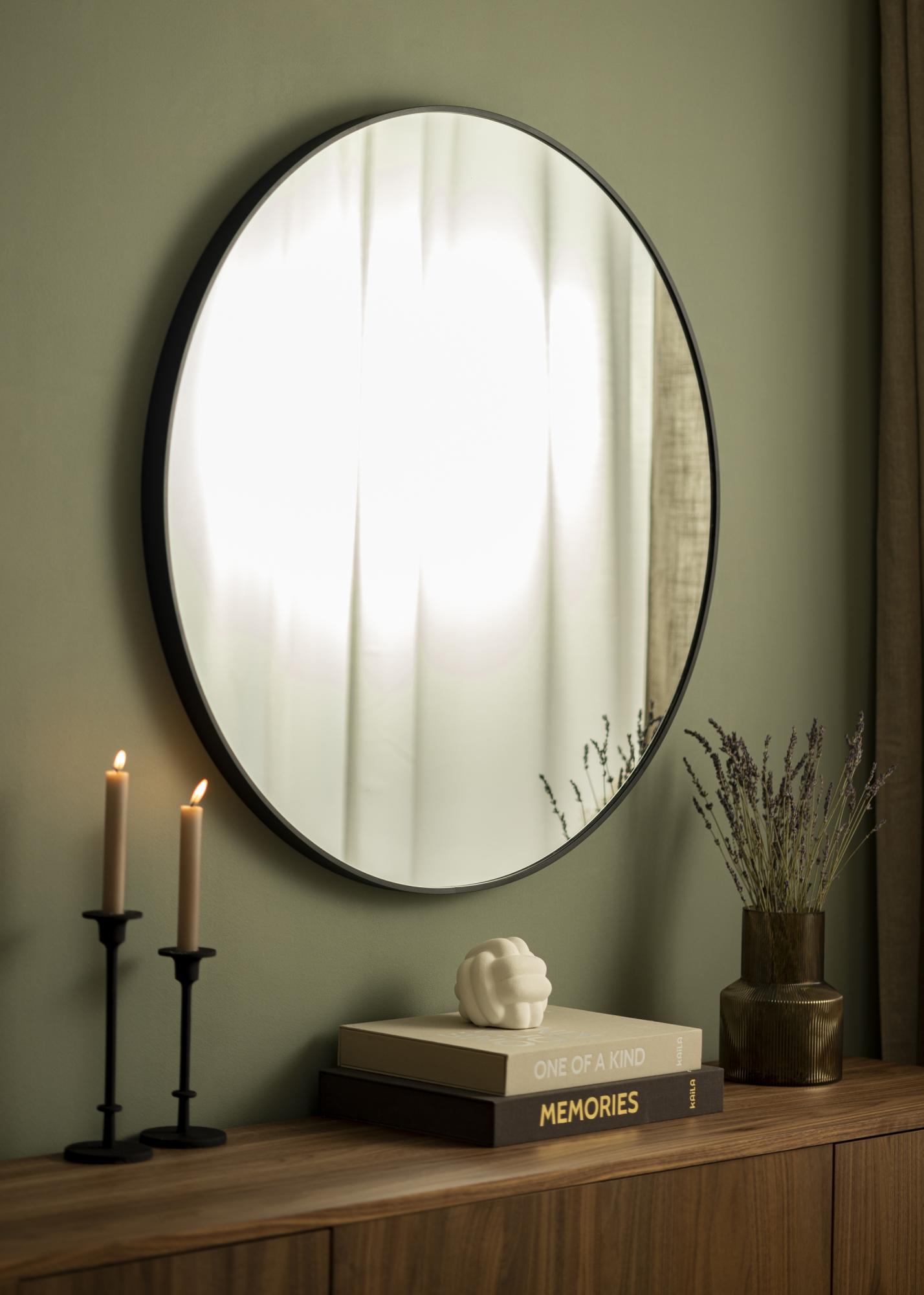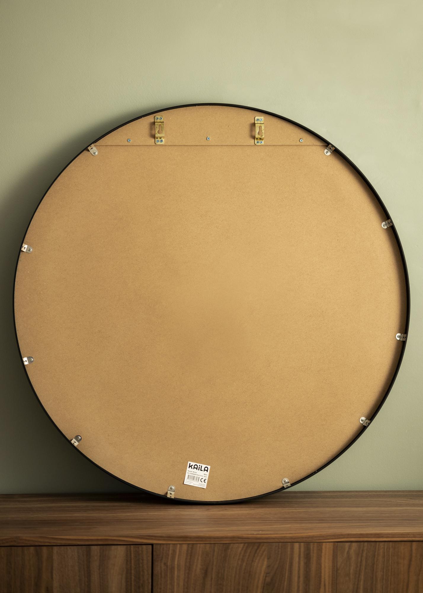 A KAILA Round Mirror Edge Black egy kerek tükör vékony, matt fekete színű fémkerettel, amely ipari és trendi megjelenést kölcsönöz. A keret – mérettől függően – 30-40 mm mély, ami miatt a tükörüveg kissé kiemelkedik a falból, és lenyűgöző 3D-hatást kelt. A keret mélysége miatt a tükör masszívnak tűnik, miközben megőrzi minimalista megjelenését. Tökéletes kerek tükör, amely bármely helyiségben elhelyezhető, ahol funkciót és letisztult svéd dizájnt szeretne hozzáadni!