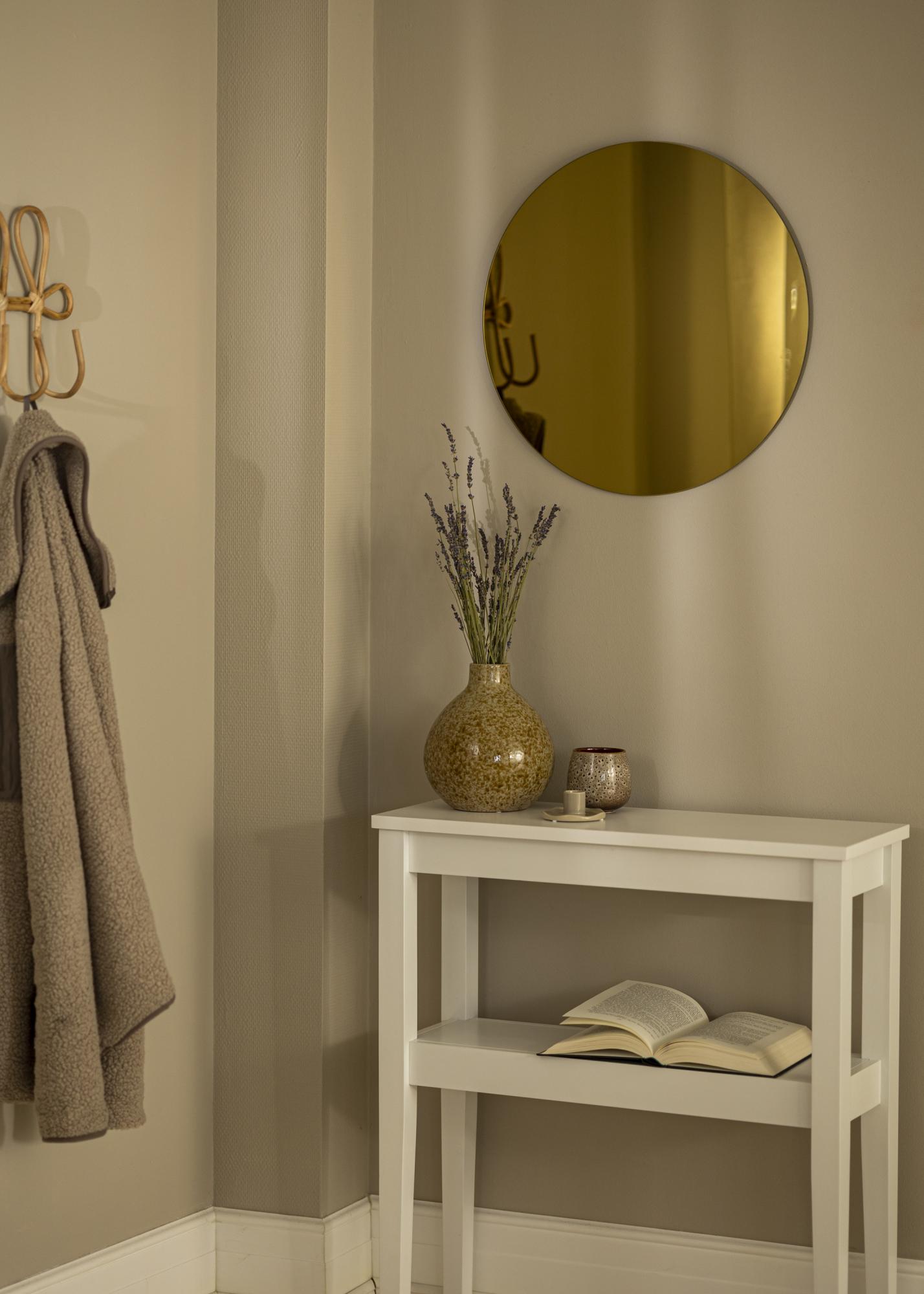 A KAILA Kerek Tükör Gold tökéletes példa arra, milyen jó lehet az eredmény, amikor a letisztult forma találkozik hatásos részletekkel. Ez a kerek tükör vékony és nincs kerete, ami modern és egyszerű megjelenést kölcsönöz neki. Ezt egy gyönyörű arany tónusú tükörüveg egészíti ki, amely kiemeli az összhatást és ízlésesen feltűnővé teszi a tükröt.