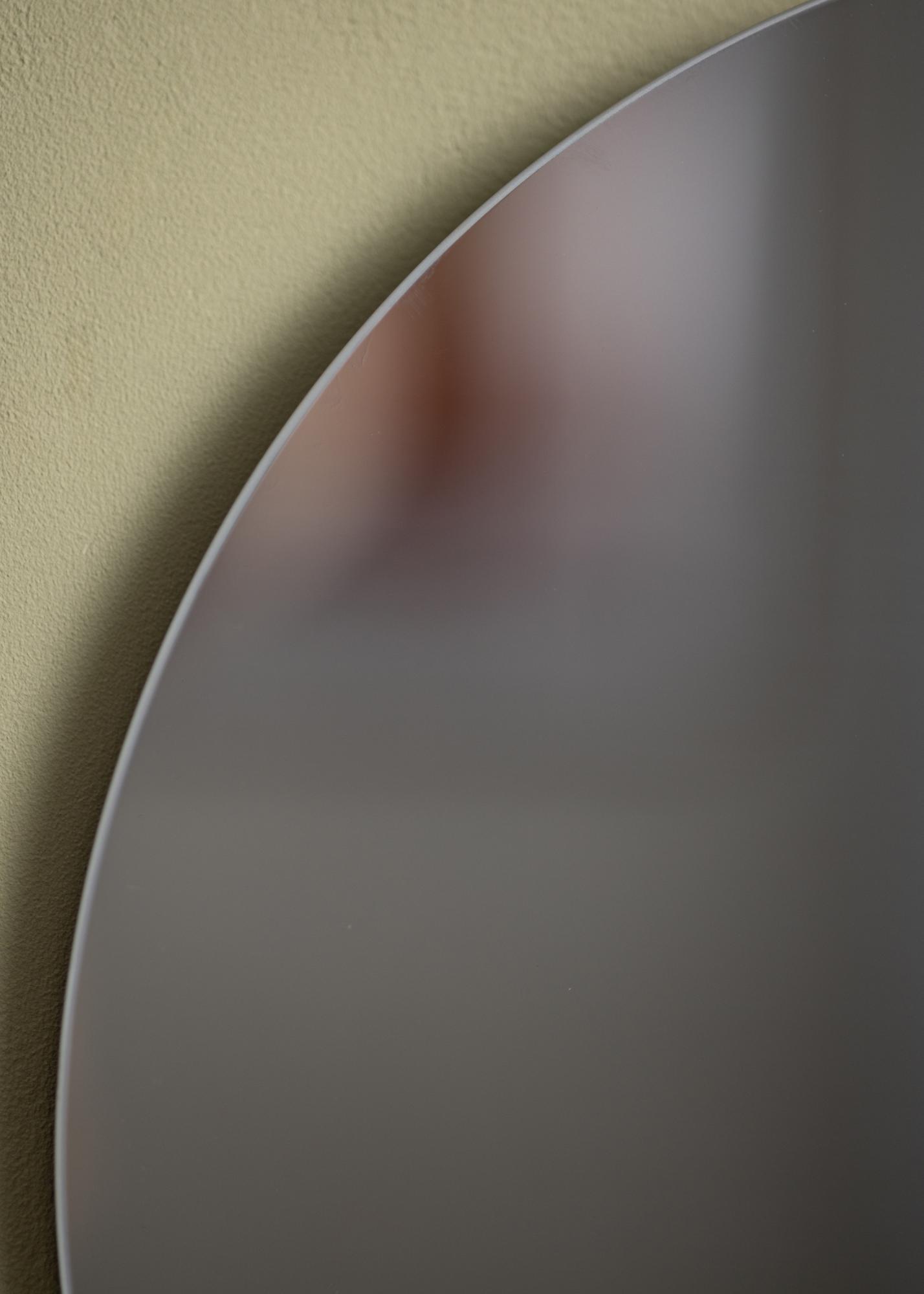 Ez a kör alakú és letisztult tükör az a kis extrával; egy elegáns és hatásos szürke árnyalatú tükörüveg. Ez a tükör letisztult formájával – vékony és keret nélküli – egy nagyon ízléses egységet alkot. A tükör kerek, lágy formája ellentétben a hideg, szürke árnyalatú tükörüveggel szintén egy stílusos aspektusa ennek az elegáns fali tükörnek.