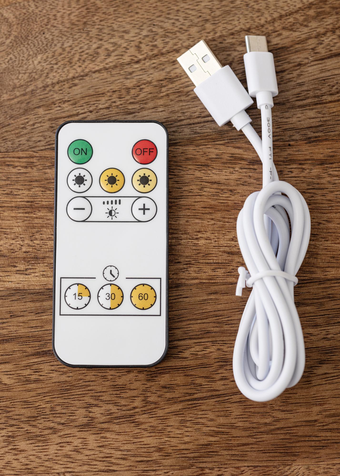 A mellékelt távirányító segítségével könnyedén be- és kikapcsolhatja a világítást, állíthatja a fényerőt, valamint beállíthat egy időzítőt 15, 30 vagy 60 percre. Ez lehetővé teszi, hogy teljesen az Ön igényeihez igazítsa a világítást, és az időzítő funkció segít az akkumulátor takarékoskodásában, mivel a beállított idő elteltével automatikusan kikapcsolja a fényt.