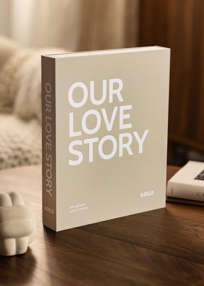 Ez egy fényképalbum és egy dohányzóasztal könyv kombinációja, amely egyben dekoratív belsőépítészeti elem is az otthonodban. A fényképalbum textillel borított dobozként van kialakítva, elegáns szürke árnyalatban. A fényképalbum elején a cím „OUR LOVE STORY” nagy fehér betűkkel van nyomtatva, az alcím pedig „We captured every moment”, ami tökéletessé teszi ezt az albumot arra, hogy megőrizze a legkedvesebb kapcsolataid emlékeit, vagy hogy egy szép ajándékként adja. Miért ne őriznéd meg ebben az elegáns fényképalbumban az esküvői fotóidat? A fényképalbum belsejében diszkrét nyomott mintát és egy gyűrűs dossziét találsz 30 (60 oldal) fekete lappal, ahová saját magad ragaszthatod be a fotókat, így kreatív lehetsz.