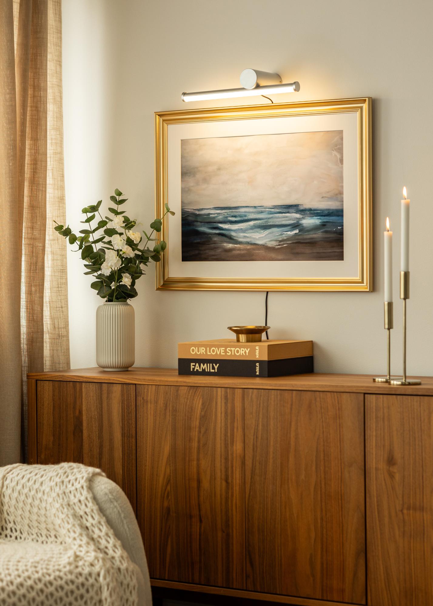 Ezüst képkivilágításunk diszkrét és elegáns megoldást kínál arra, hogy kiemelje festményeit vagy műalkotásait. Karcsú kialakításának és 40 cm hosszának köszönhetően könnyedén illeszkedik bármilyen belső térbe, egyenletes és kellemes világítást biztosítva. Mélysége 15,3 cm, így tökéletesen alkalmas arra, hogy a kép fölé akassza anélkül, hogy túl sok helyet foglalna a falon.