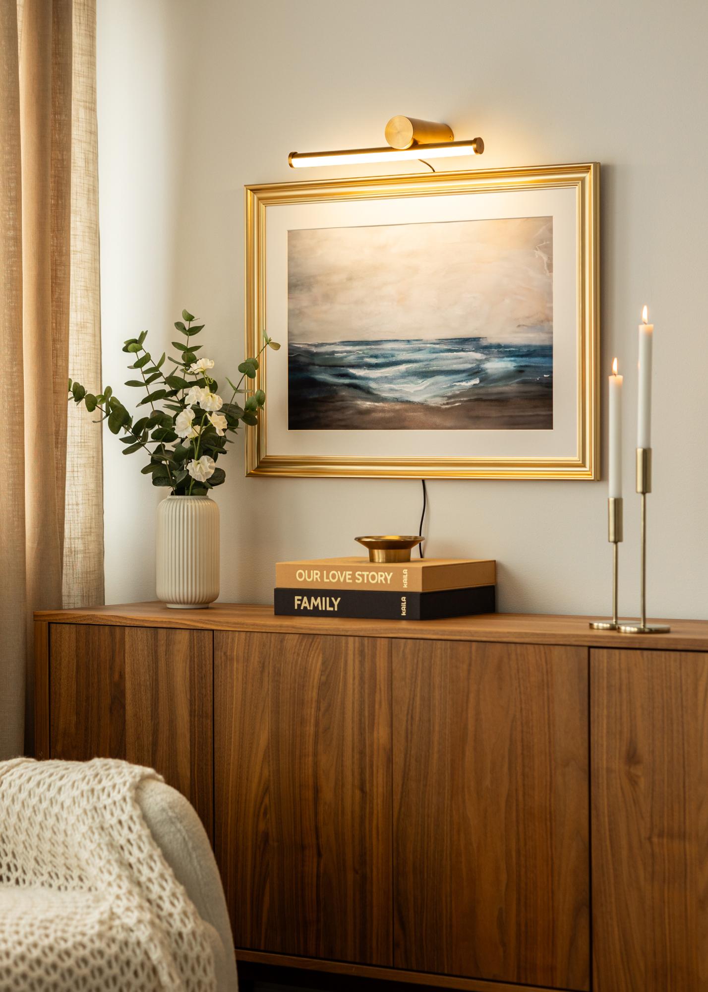 Az LED-lámpák fénye 3000K színhőmérséklettel rendelkezik, amely meleg és hívogató légkört teremt anélkül, hogy túlzó lenne. Ezenkívül a fényerő könnyen szabályozható a beépített dimmer segítségével, így a nap időpontjához vagy az általad megálmodott konkrét hangulathoz igazíthatod a világítást. A fény elegendő ahhoz, hogy akár 80 cm széles műalkotásokat is megvilágítson, így kiváló választás különféle képek és fotók számára.