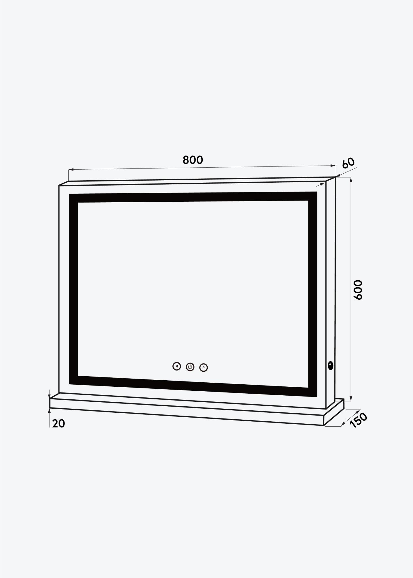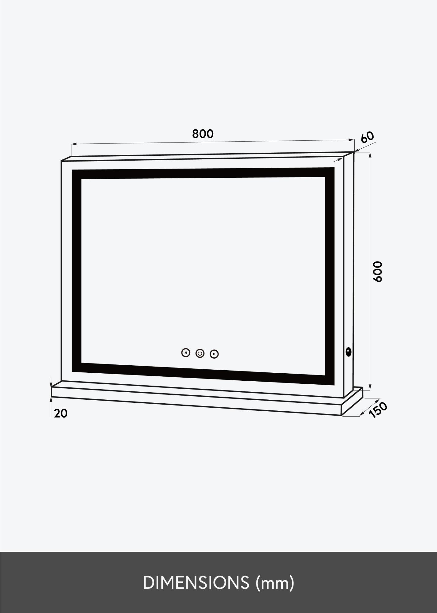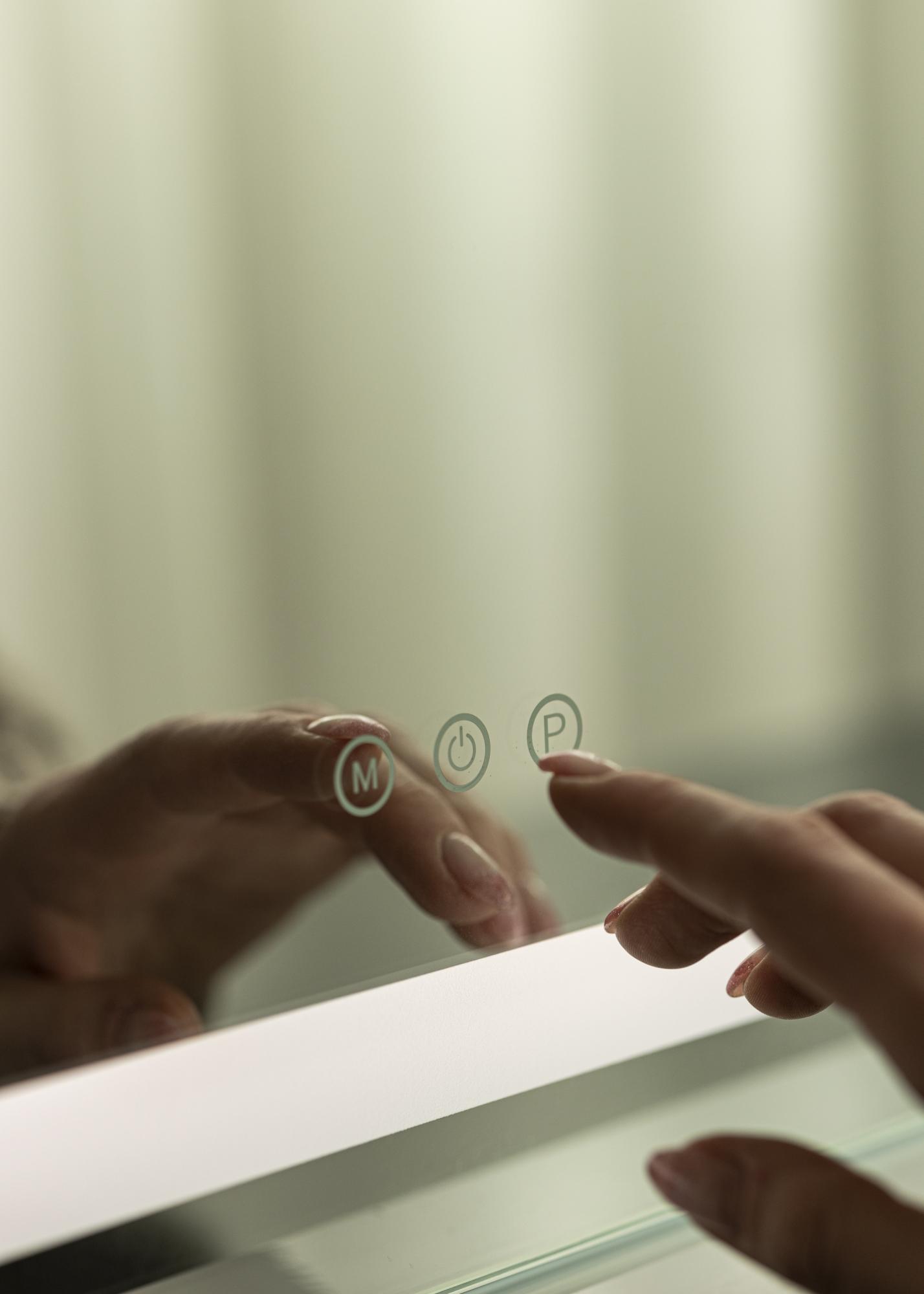 A tükör kellemes fényével rendelkezik 3000K-6000K tartományban, és könnyen bekapcsolható a tükör előlapján található integrált érintőgombbal. Itt érintőgombok is találhatók, hogy beállítható legyen a fényerő és a színhőmérséklet, ahol a „P” gomb változtatja a fényerőt, és az „M” gomb beállítja a színhőmérsékletet. Az elektromos csatlakozás dugasszal történik.