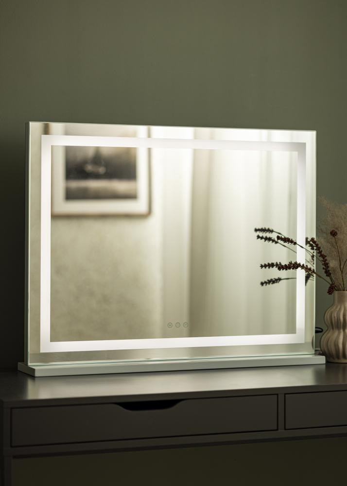 Változtassa át sminkterületét egy luxusoázissá az új fényes sminktükrünkkel. Ez az elegáns tükör téglalap alakú, és LED-világítással határolt kerettel rendelkezik, amely nemcsak a szoba megjelenését emeli, hanem javítja a sminkelési élményt is. A tükör felülete 80x60 cm-es mérettel rendelkezik, ami optimális rálátást biztosít, függetlenül attól, hogy a szoba melyik részében helyezi el. A modell praktikusságát az adja, hogy felszerelhető a falra rögzített telepítéshez vagy vízszintesen elhelyezhető egy asztalon, így ideális azok számára, akik rugalmas megoldásokat részesítenek előnyben anélkül, hogy lyukakat kellene fúrniuk a falba. Ez a sminktükör nemcsak egy funkcionális elem, hanem egy ízléses belsőépítészeti részlet is, amely tökéletesen illik minden modern otthonba.