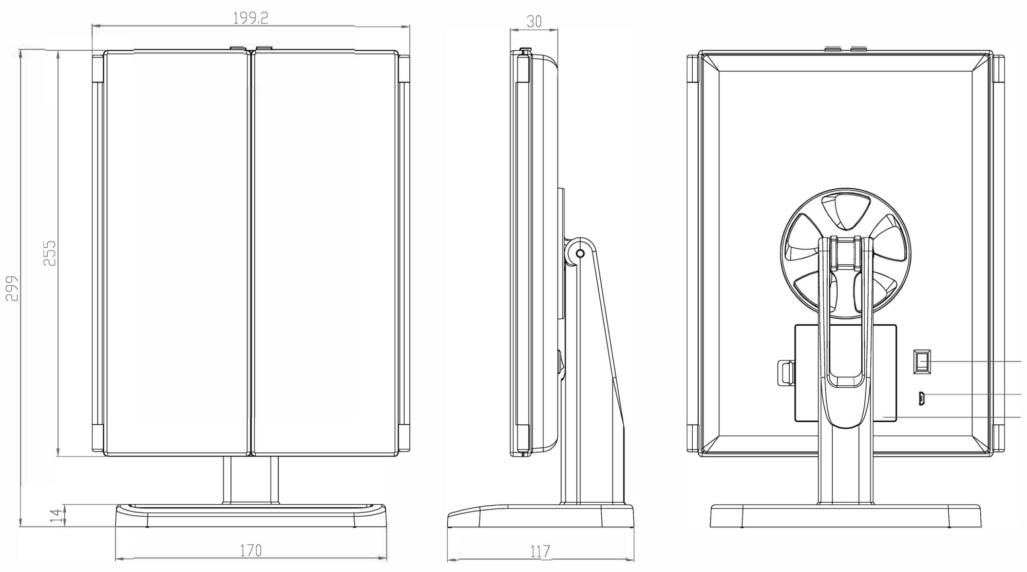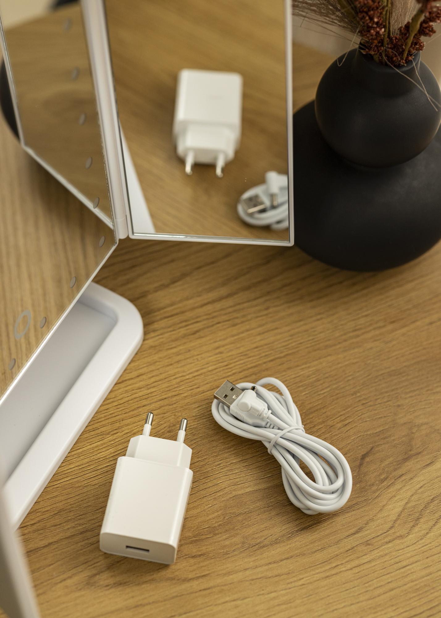 A sminktükör ABS anyagból készült a lehető legjobb minőség érdekében, és a LED fényforrás természetes világítást biztosít, amely kevesebb energiát fogyaszt. A tükröt 4x AA elemmel (nem tartozék) lehet működtetni, vagy a mellékelt USB fali adapterrel és USB kábellel tölthető fel.