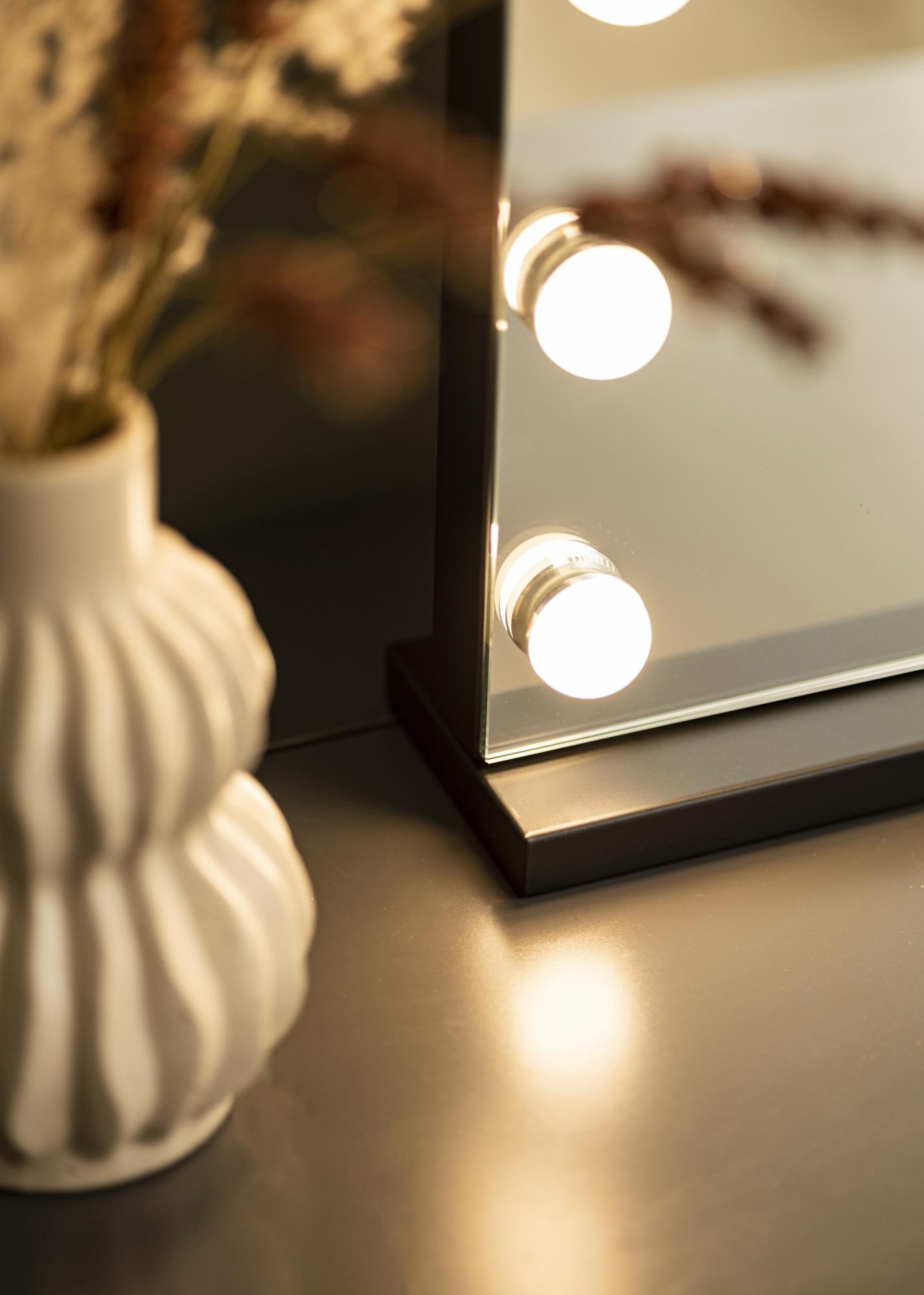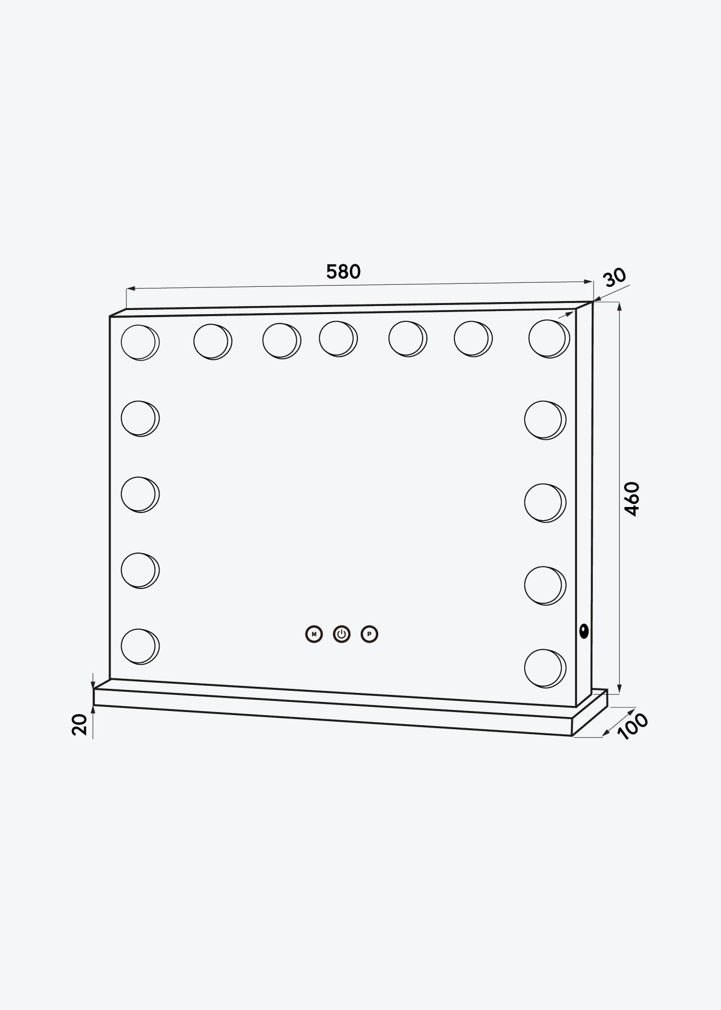 Dobja fel a sminkasztalát, a nappalit vagy az előszobát egy elegáns sminktükörrel beépített világítással! A tükörnek nincs hagyományos kerete, helyette a tükörfelületet 15 LED-lámpa keretezi, amelyek a tükör szélein vannak elhelyezve. A világítás állítható, és beállíthatja mind a fényerőt, mind a színhőmérsékletet. A fénybeállítások a tükör alsó szélén található érintőgombokkal végezhetők el, ahol a "P" gomb a fényerőt változtatja, és az "M" gomb a színhőmérsékletet állítja be. Van egy érintőgomb is a világítás felkapcsolására vagy lekapcsolására. Az elektromos csatlakozás konnektorral történik.