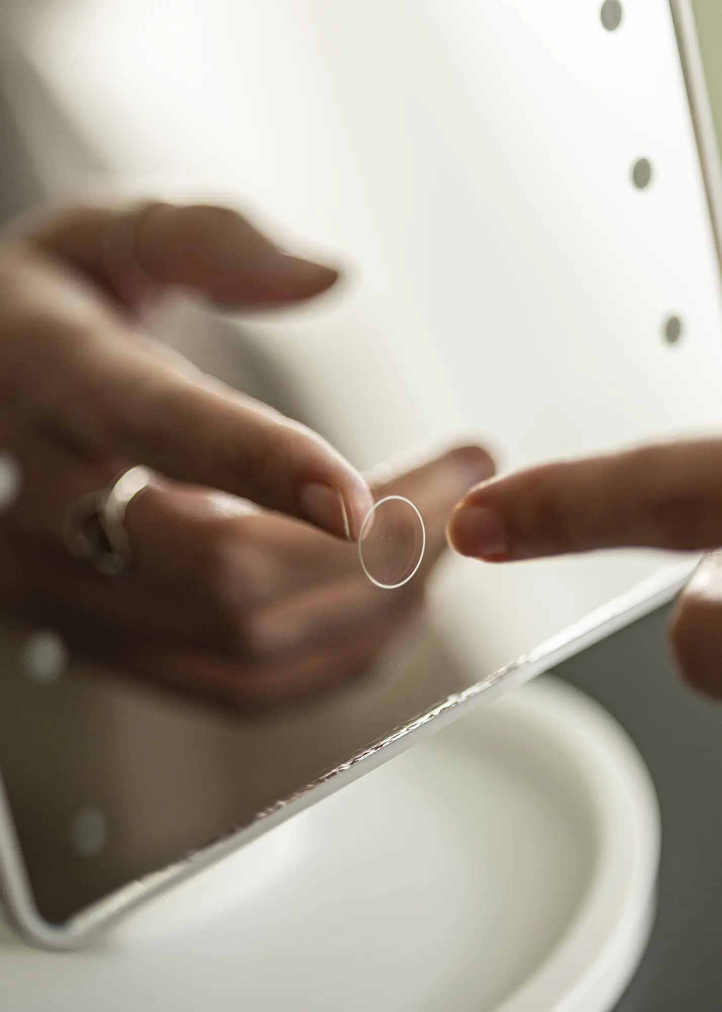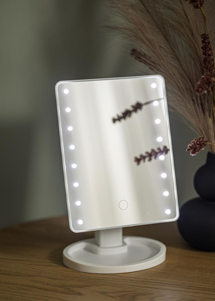 A tükör beépített LED világítással rendelkezik, amely a tükröző felület két hosszanti oldalán fut végig. A világítás hideg fehér fényt bocsát ki. A tükröt a hátoldalon található be- és kikapcsoló gombbal lehet bekapcsolni, míg az elülső érintőgombbal könnyedén szabályozhatja a fényerőt a kívánt szintre.