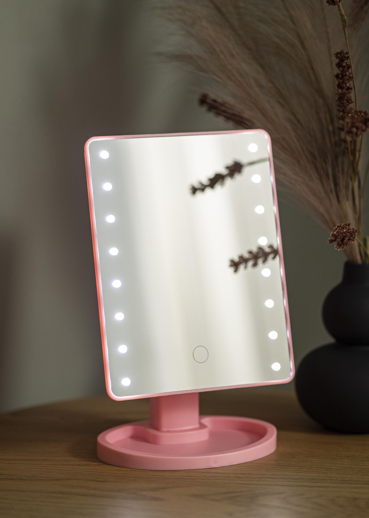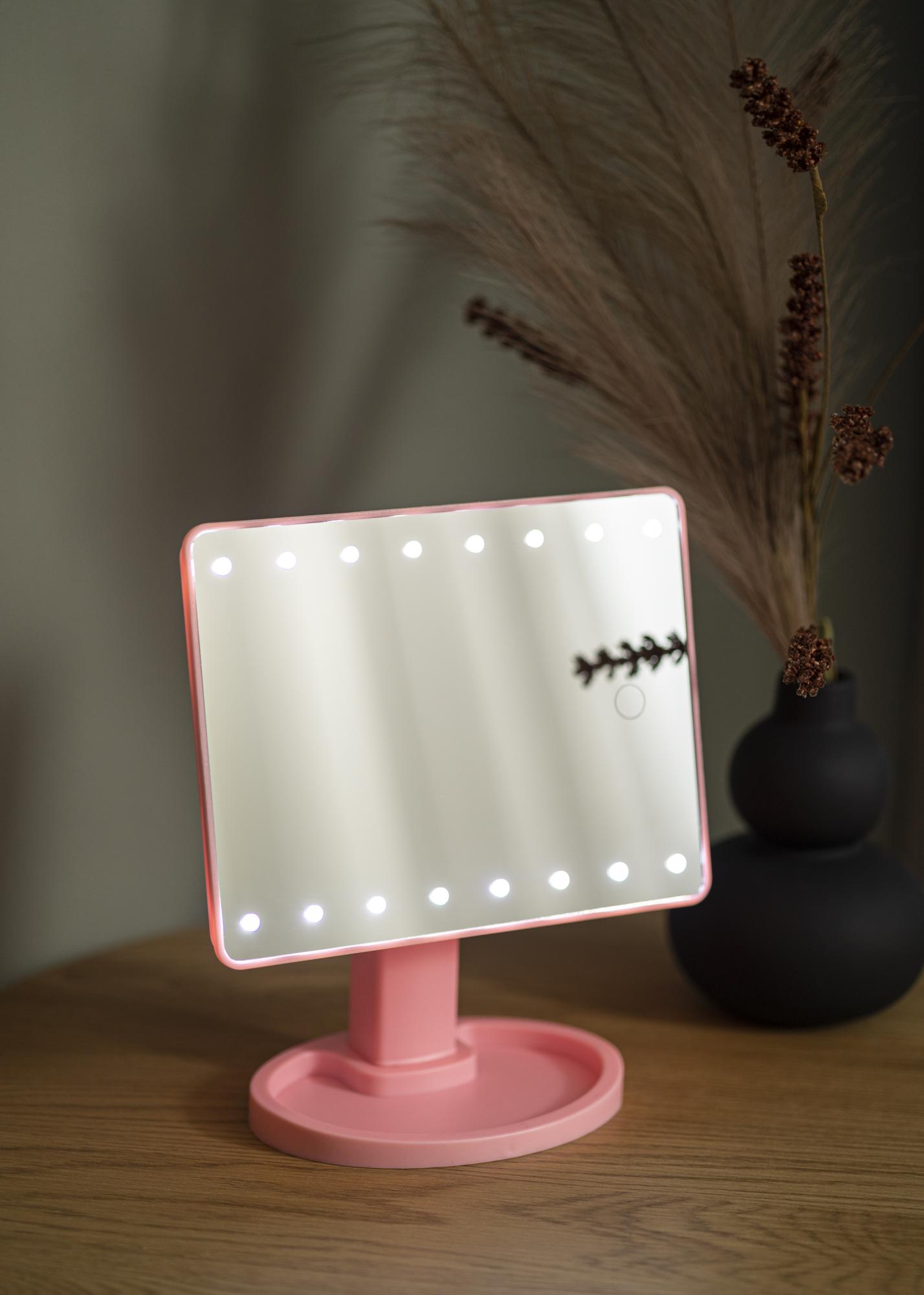 Ez a sminktükör kiváló választás azoknak, akik kisebb tükröt szeretnének egy csinos modellben. A rózsaszín árnyalat egy kellemes színfolt, miközben a beépített LED-világítás egyenletes, hideg fehér fényt biztosít, amikor tükröződik. A tükröt a készülék hátoldalán található bekapcsológombbal lehet felkapcsolni. A világítást le is lehet tompítani, így beállíthatod az általad kedvelt fényerőt. A fény tompításához tartsd lenyomva az elülső érintőgombot.