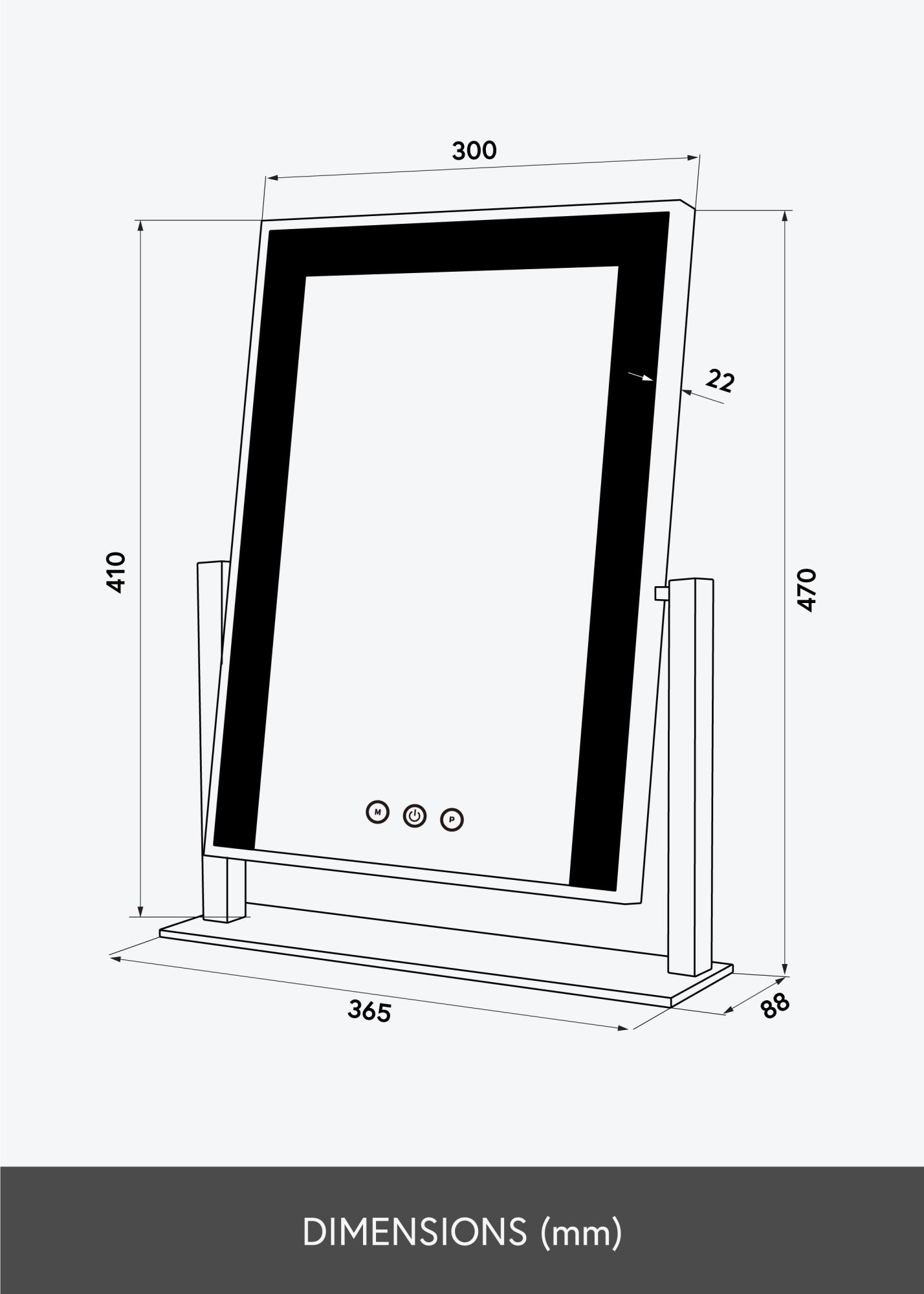 Ez a sminktükör felállított helyzetben helyezhető el a smink sarkodban, nappalidban vagy bármely más helyiségben, ahol egy szép tükörre van szükség. Az álló kialakítás lehetővé teszi a tükör felületének döntését is. Az elektromos csatlakozás dugvillával történik.
