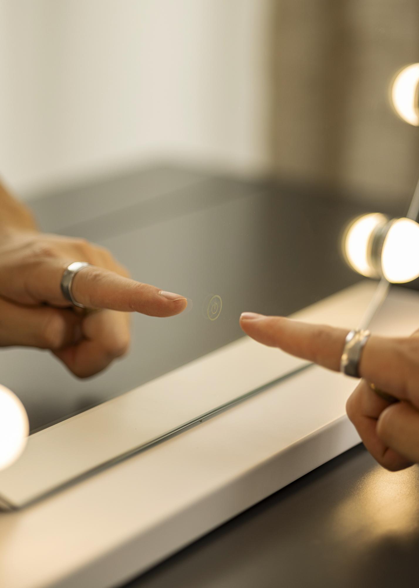 Tapasztalja meg a hollywoodi csillogás érintését ezzel a sminktükörrel fénnyel, amely finoman ötvözi az eleganciát és a funkcionalitást. A sminktükör friss fehér árnyalatú, és 12 dekoratív LED-izzóval van felszerelve, amelyek 3000K meleg fehér fényt bocsátanak ki, ideális feltételeket teremtve a smink alkalmazásához. A fény egyszerűen aktiválódik és állítható érintőgombbal, és mivel LED-technológiát használ, energiatakarékos és természetes fényt biztosít.