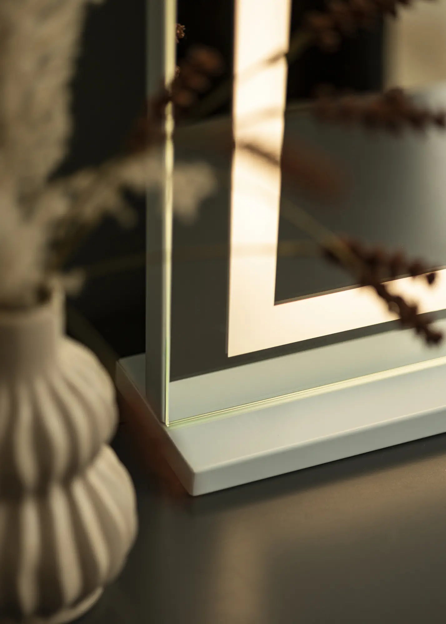 Ez a sminktükör világítással a svéd KAILA márkától, a klasszikus svéd design csúcsát képviseli, ötvözve a modern funkcionalitással és eleganciával. Letisztult téglalap alakjával és keretezett LED-világításával ez a tükör tökéletes fényviszonyokat teremt a smink alkalmazásához és a részletezett tükörkép megjelenítéséhez. A semleges fehér szín megkönnyíti a különböző lakberendezési stílusokhoz való illeszkedést, és okos kialakításának köszönhetően könnyen elhelyezhető asztalokra és komódokra az optimális használat érdekében.