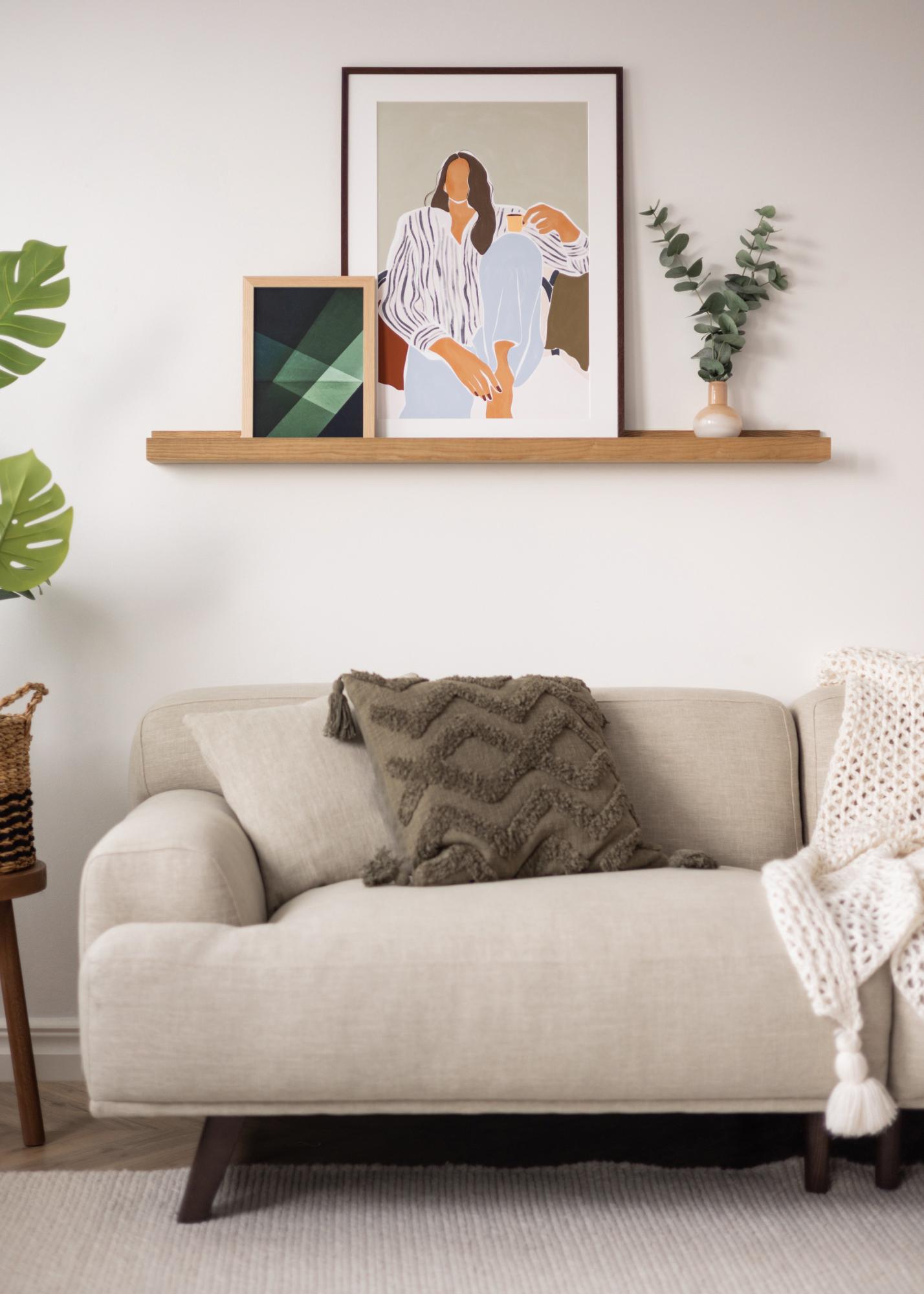 Egy praktikus képtartó polccal elegánsan mutathatja be képeit, és ráadásul kiváló lehetőségeket kap a faliművészet változatos elrendezésére. Ez a képtartó polc tömör tölgyből készült, letisztult tervezéssel, egyszerű, egyenes vonalakkal. Maga a polclap egy kimart vájattal rendelkezik, amely támaszt nyújt a képeinek, és csinos szöget biztosít, amikor a falnak dőlve állnak. A képtartó több különböző hosszúságban kapható, ebből a változat hossza 130 cm. A képtartón előre fúrt lyukak találhatók, és hogy még egyszerűbb legyen, mellékeltek hozzá megfelelő csavarokat és tipliket is.