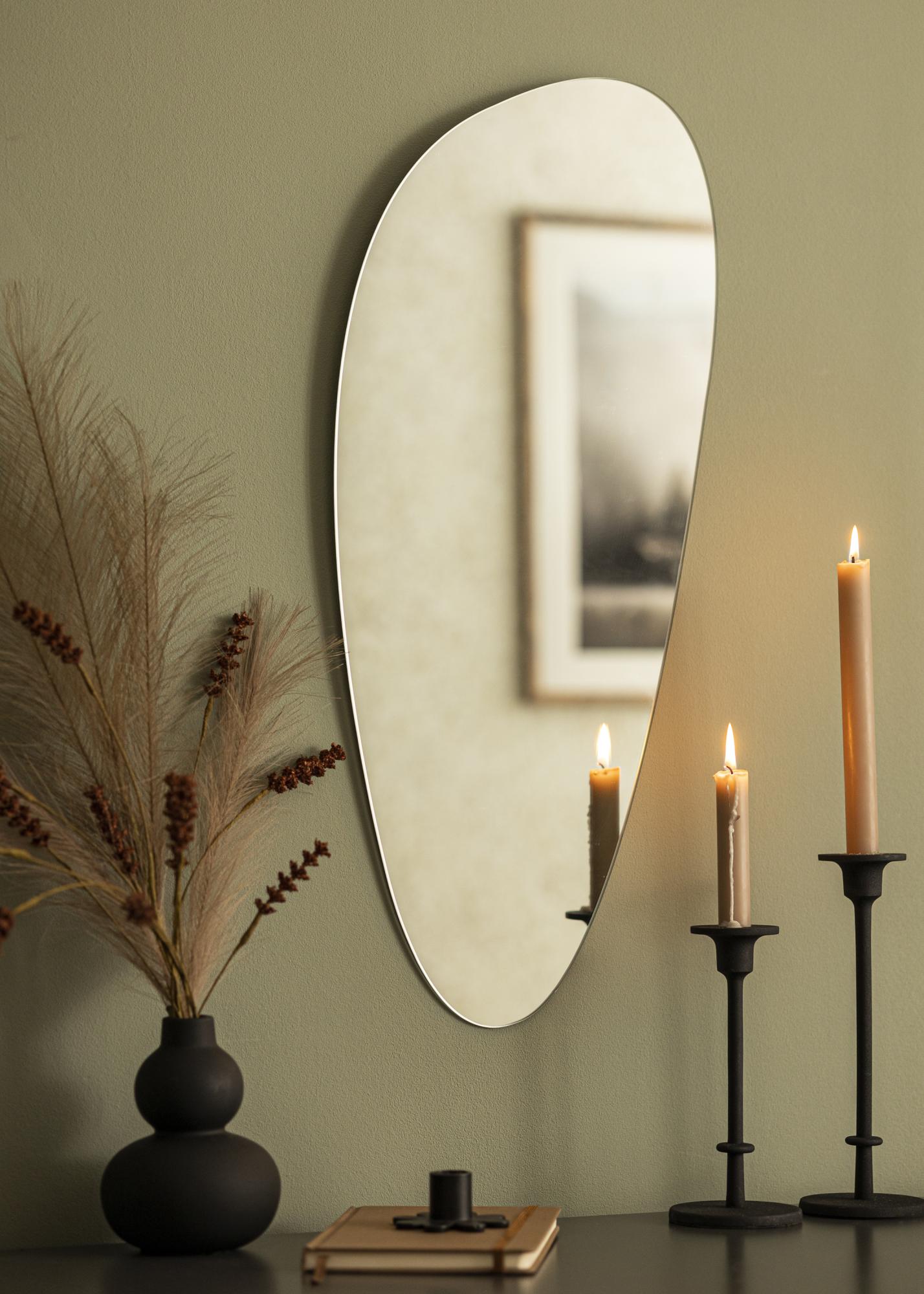 Ez a fali tükör a minimalizmus legjavát képviseli – keret nélküli, aszimmetrikus, hosszúkás formájú kialakítással. A tükörüveg mindössze 4 mm-es vékonysága tovább fokozza a letisztult, minimalista érzést.