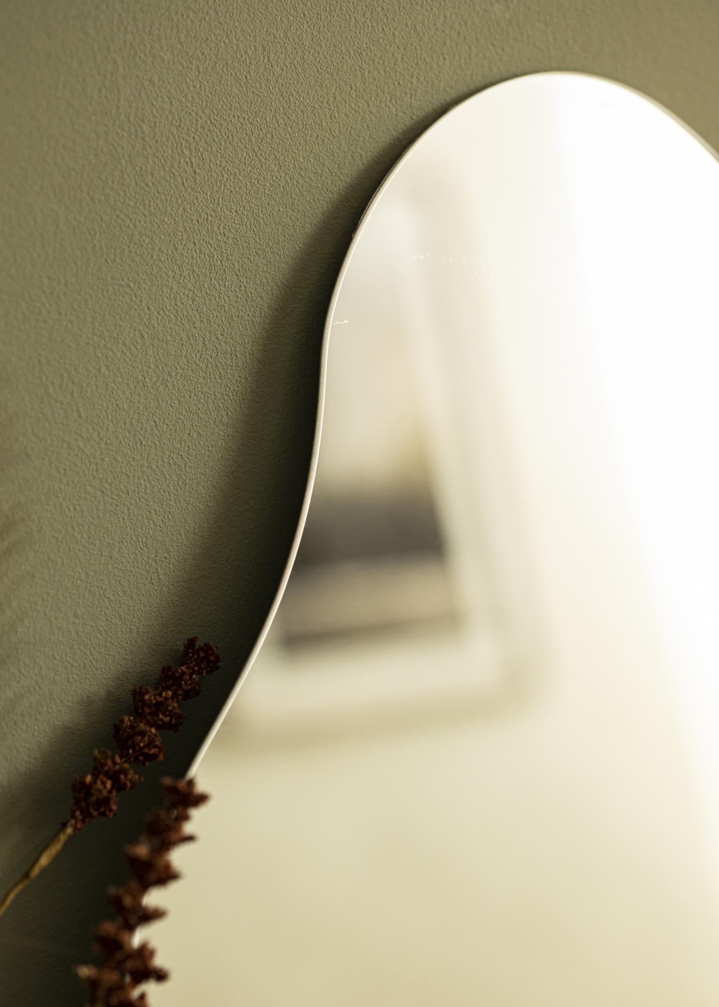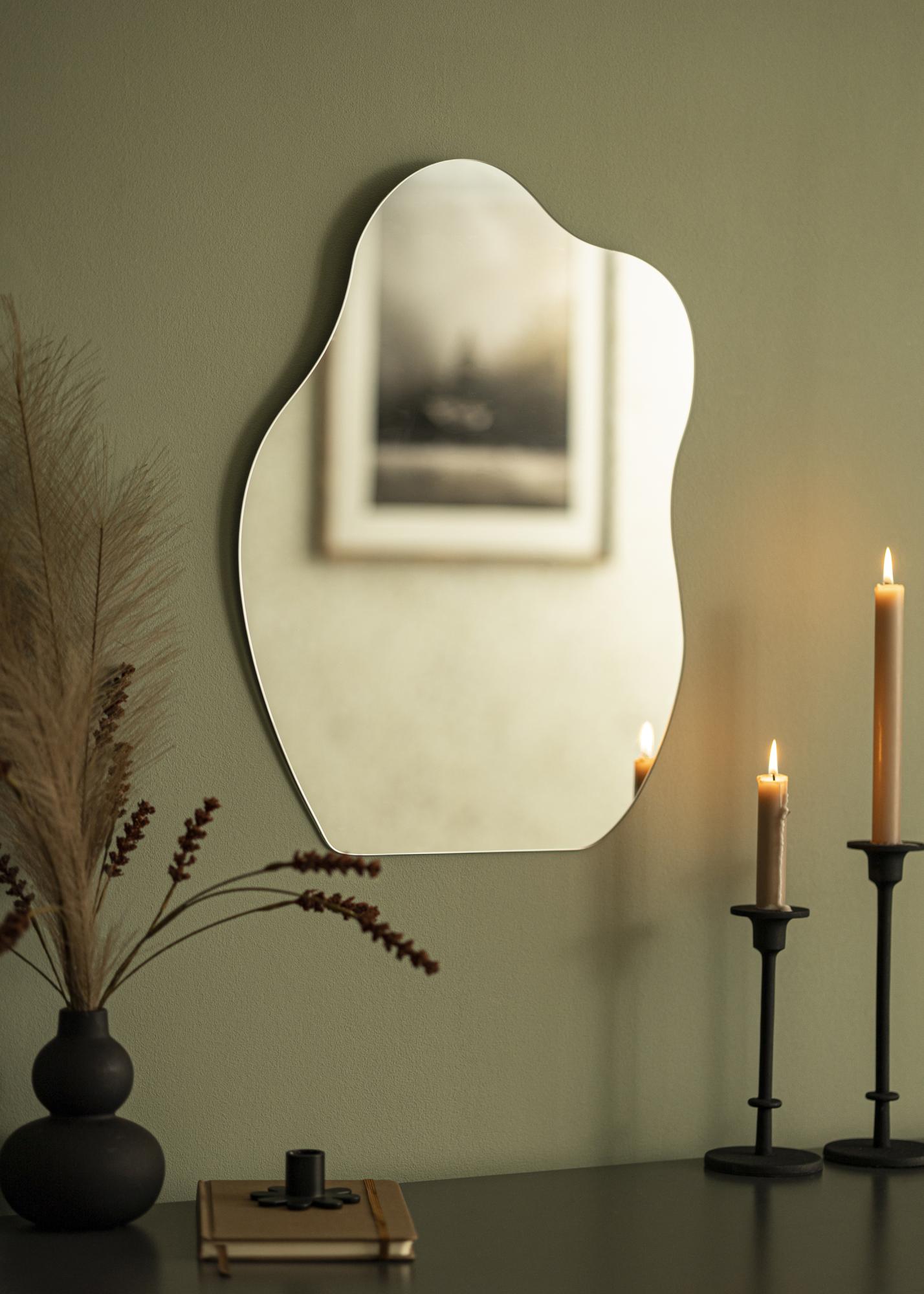 Ez a fali tükör eleganciát és játékosságot kínál, hullámos formájával adva a tükör egyedi megjelenését. Az alsó széle egyenes, így a tükör jól elhelyezhető egy bútorra állítva, a falnak támasztva. Természetesen a tükröt a falra is felszerelheti!