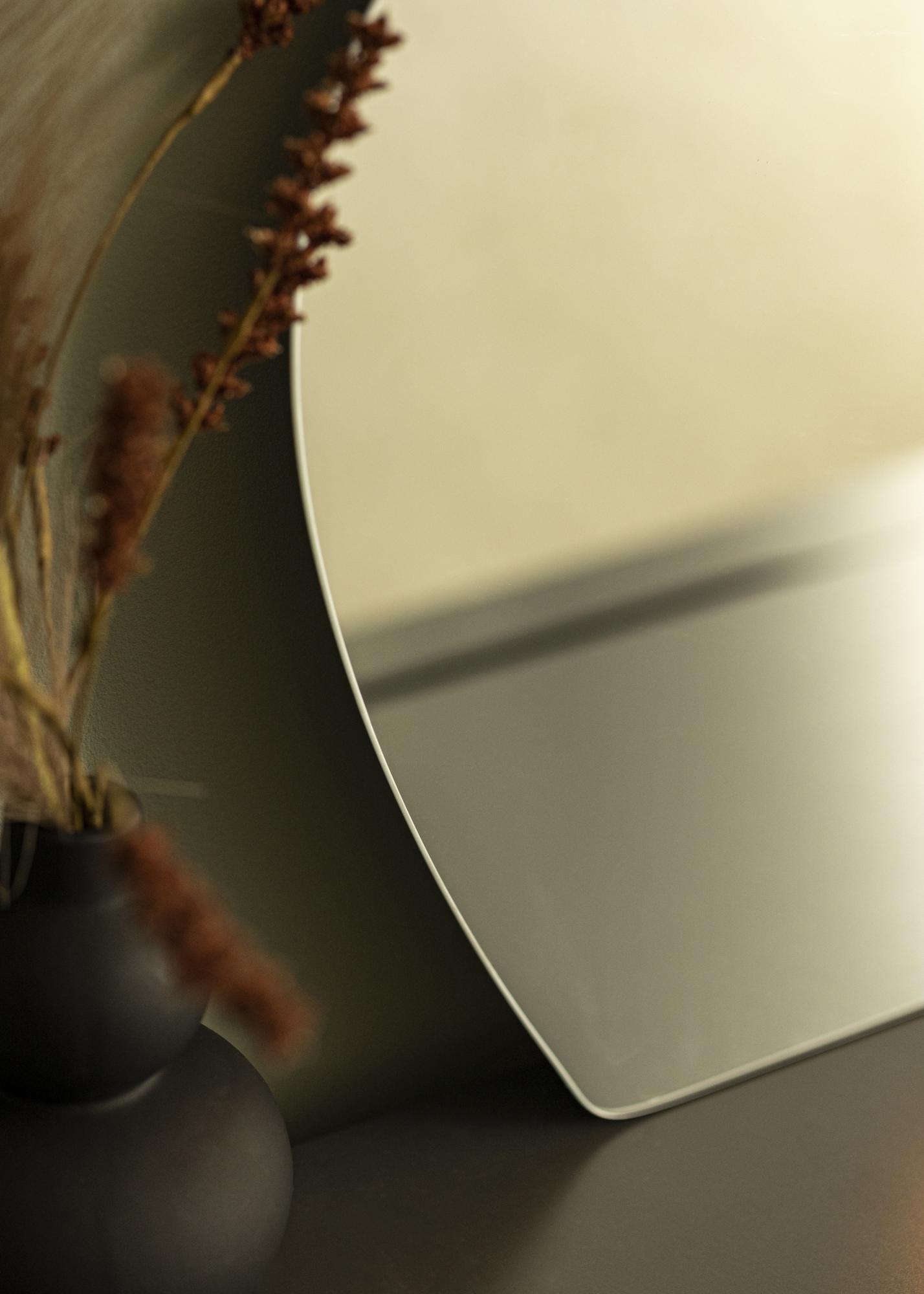 A tükör keret nélküli kialakítású és vékony tükrös üveggel rendelkezik. Ugyanolyan jól illik az előszobai komód fölé, mint a gyerekszobába – sőt, még a fürdőszobai használatra is jóváhagyott.