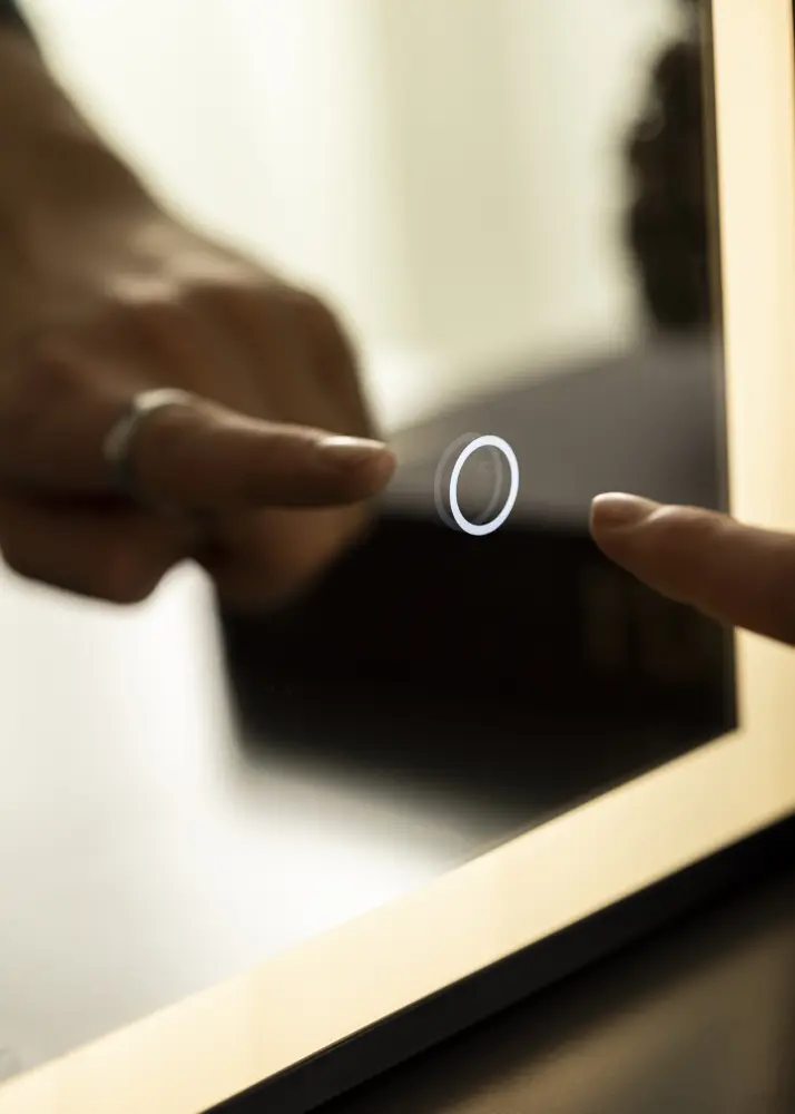 Ez a fürdőszobai tükör egy elegáns fekete alumínium keretből és egy LED-szalagból áll, amely körülveszi a tükörfelületet. Az elegáns megjelenés miatt nemcsak a fürdőszobában passzol, hanem például a nappaliban vagy az előszobában is stílusos belsőépítészeti elemmé válik. A LED-világítás 3000K-es fényerővel rendelkezik, és 10%-tól 100%-ig állítható. A világítás szabályozásához néhány másodpercig tartsa nyomva a tükör egyik sarkában található érintőgombot. A tükör fix beszerelésre van tervezve, és kapcsolóhoz csatlakozik. A helyes működés érdekében a tükröt hagyományos kapcsolóhoz, nem pedig fényerő-szabályozós kapcsolóhoz kell csatlakoztatni.