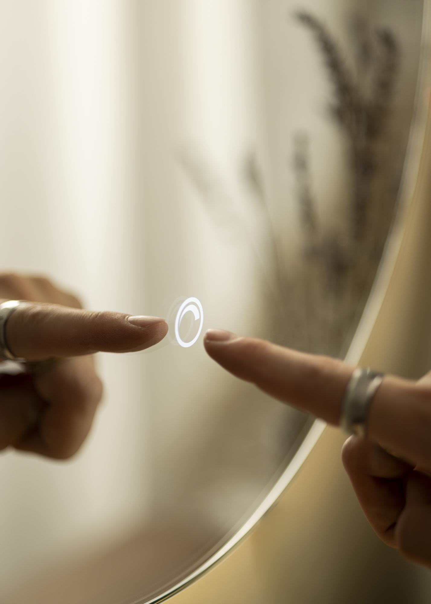 Ez egy klasszikus, kerek formájú fürdőszobai tükör a svéd KAILA-tól. A fürdőszobai tükör körben beépített, állítható fényerejű LED világítással rendelkezik, amely hátulról világít, és kellemes, meleg fehér fényt ad előre 3000K-on. A világítás állítható, és egyszerűen szabályozhatja a fényerejét azzal, hogy néhány másodpercig nyomva tartja a gombot. Amikor legközelebb bekapcsolja a világítást, a tükör emlékezik arra, milyen fényerőre volt beállítva. A LED energiahatékony fényforrás, amely egyenletes és természetes fényt biztosít.