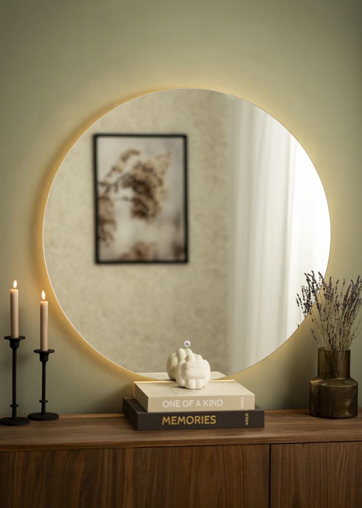 Ez egy klasszikus kerek fürdőszobai tükör a svéd KAILA-tól. A fürdőszobai tüköráben beépített, szabályozható fényerejű LED világítás van, ami szépen megvilágítva ad meleg fehér fényt elől 3000K színhőmérsékletben. A világítás szabályozható, és egyszerűen állítható a fényerősség, ha néhány másodpercig nyomva tartja a gombot. Legközelebb, amikor elindítja a világítást, a tükör megjegyzi, milyen fényerősségen lett beállítva. A LED energiatakarékos fényszerforrás, amely egyenletes és természetes fényt biztosít.
