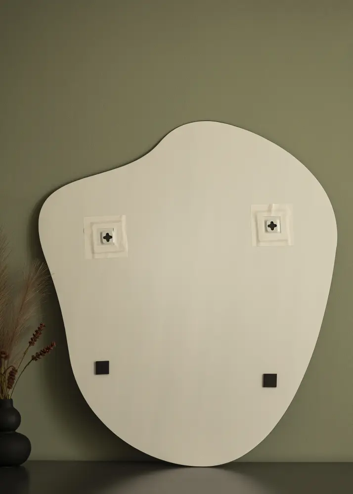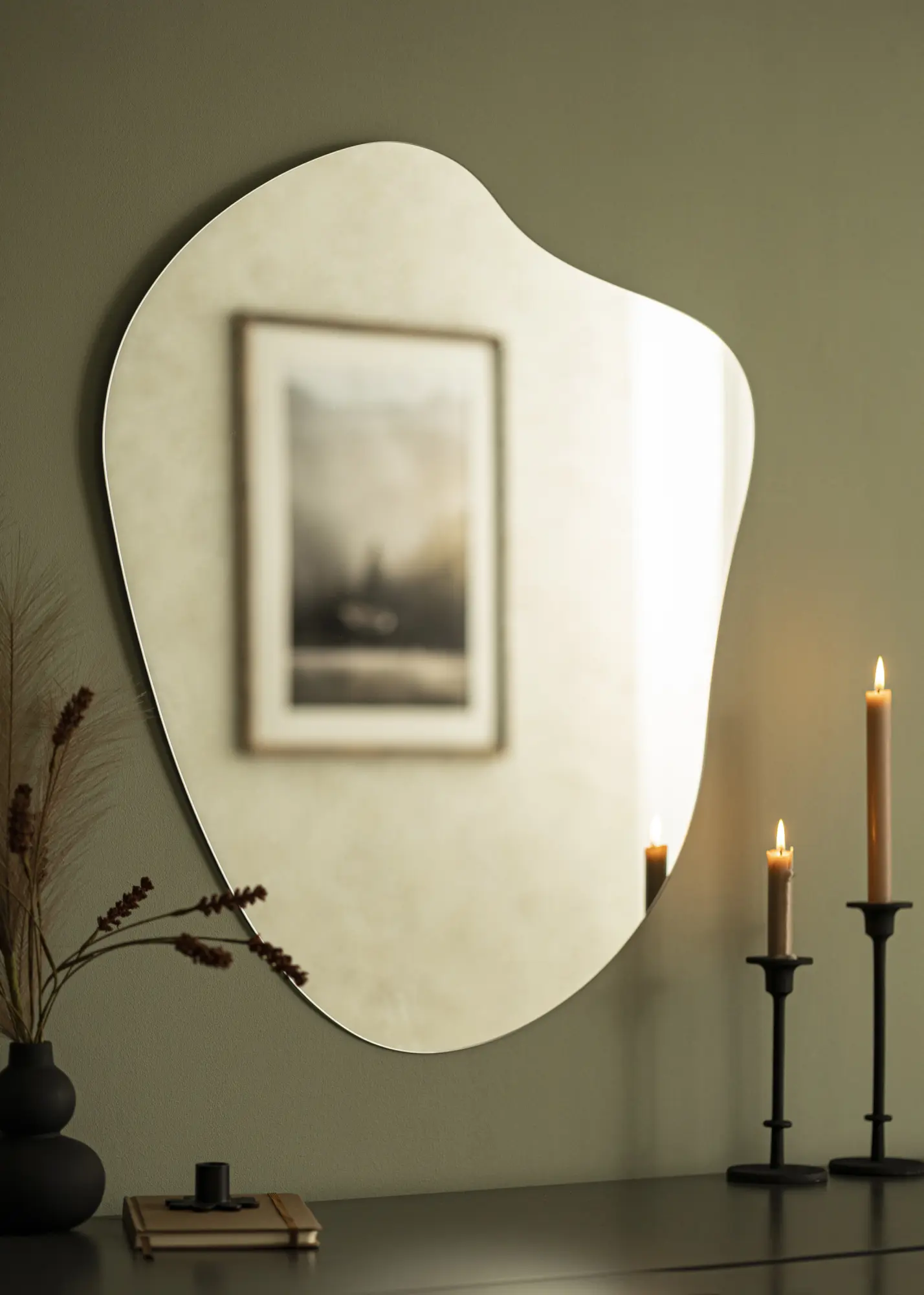 Legyen ez a divatos fali tükör egy izgalmas lakberendezési elem, amely gyönyörűen visszaveri a fényt az ablakokból és lámpákból. Az egyedi forma és a keret hiánya adja a tükrön annak jellegzetes megjelenését, amely egyszerre modern és minimalista.