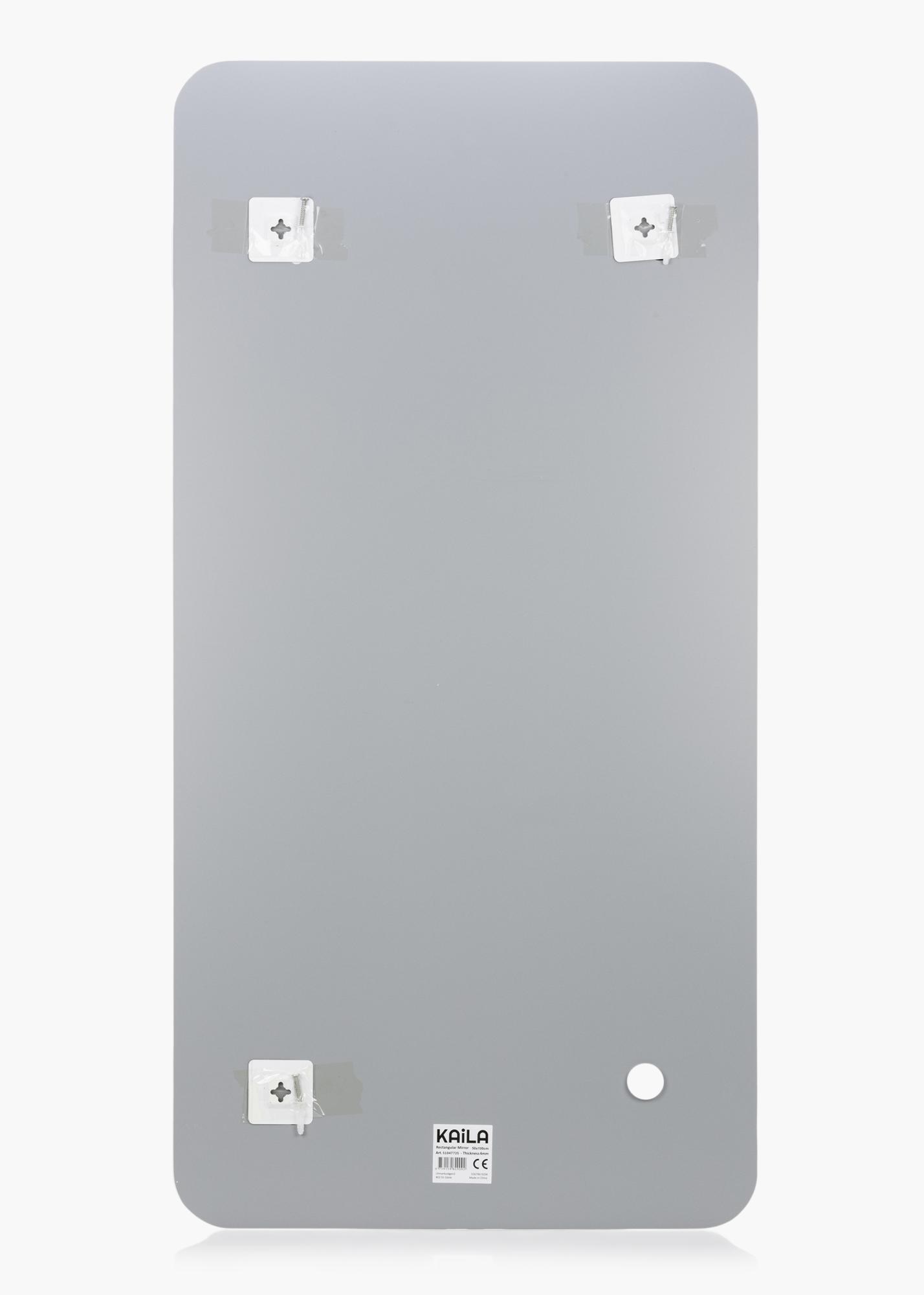 Ez egy téglalap alakú tükör a KAILA-tól, dekoratívan lekerekített sarkokkal. A puha forma elegáns megjelenést kölcsönöz, amelyet tovább erősít a keret nélküli kialakítás. A tükör mérete 50x100 cm.