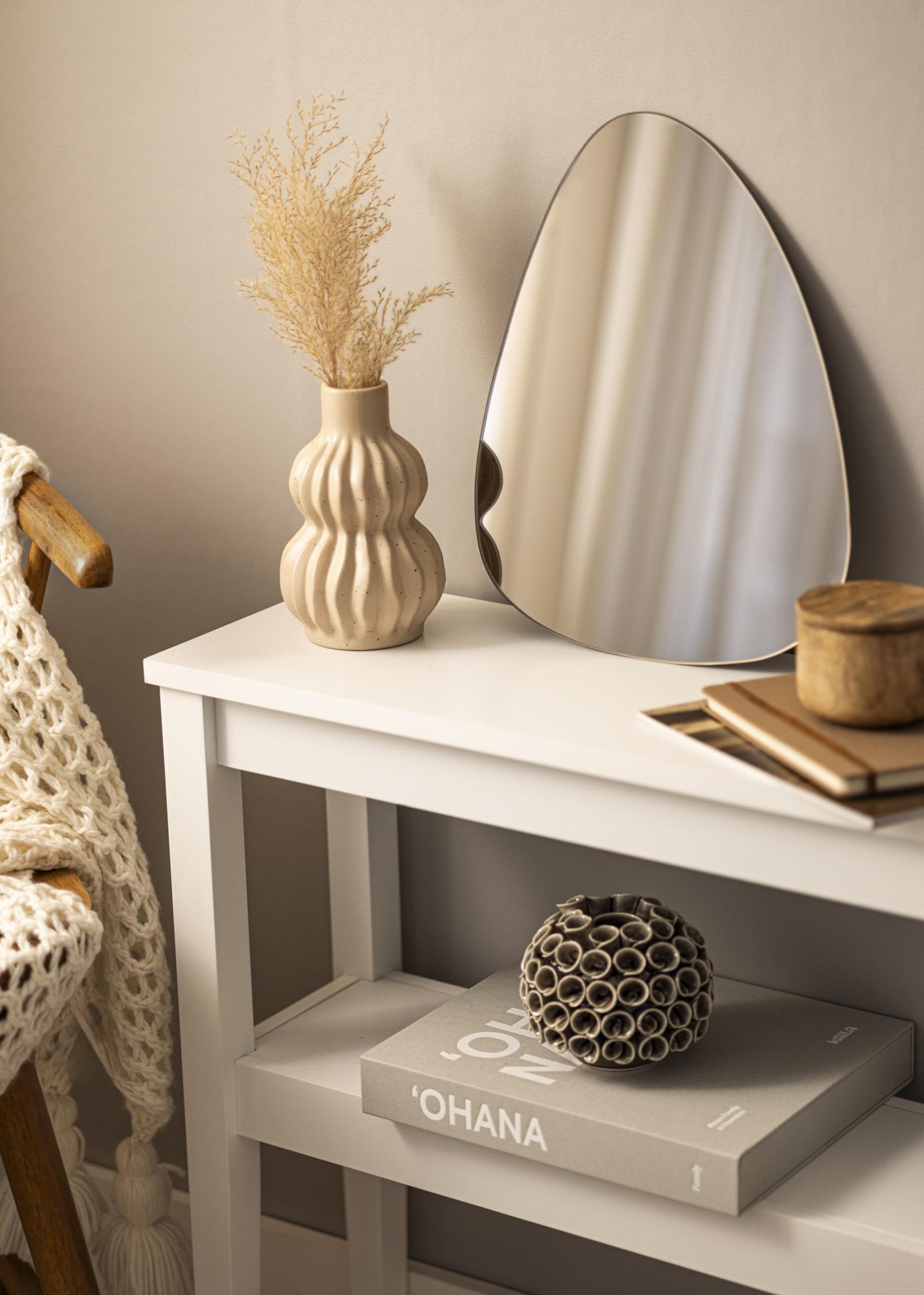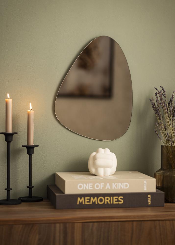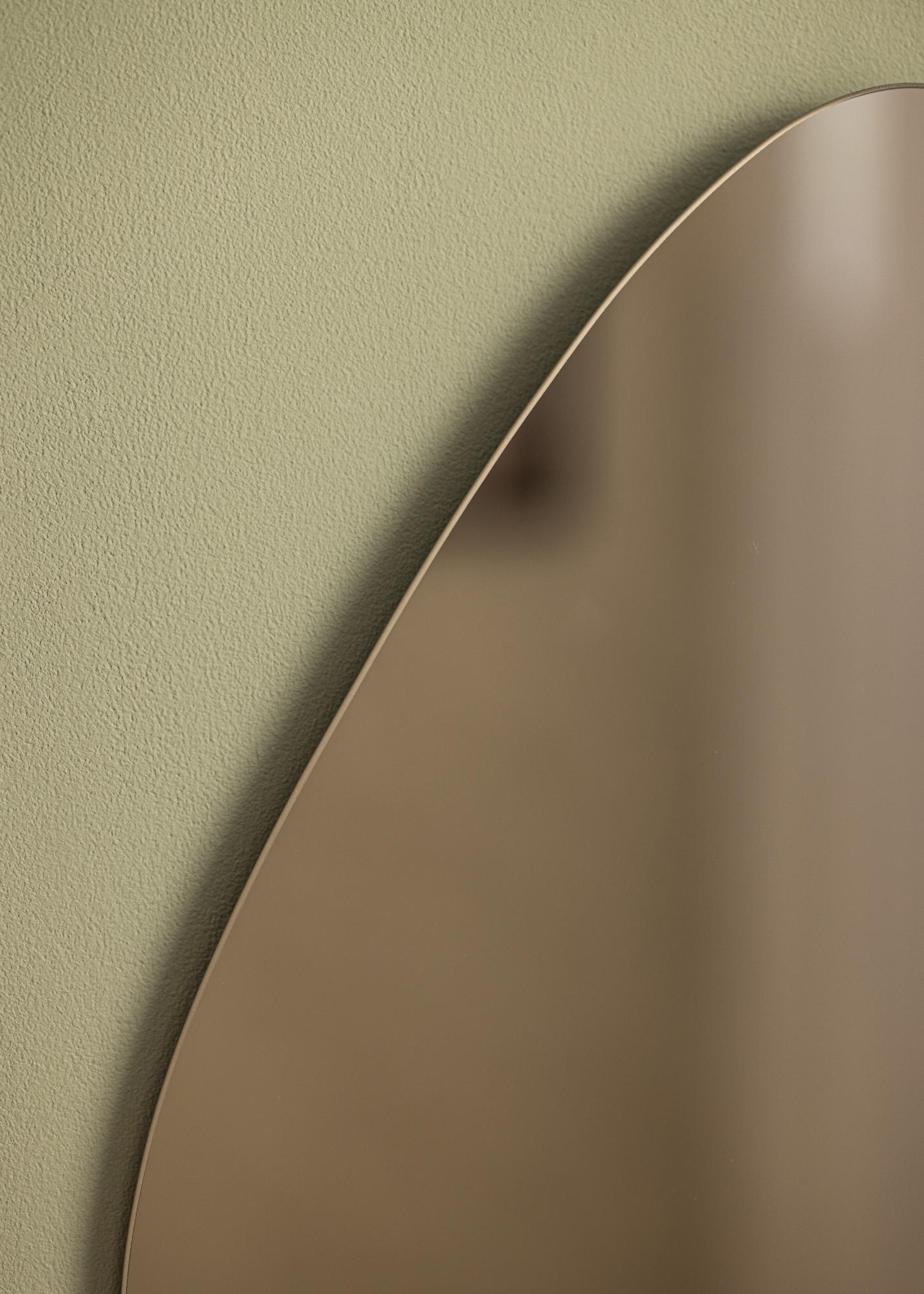 Ez az aszimmetrikus tükör igazán stílusos és trendi lakberendezési elem lesz otthonában! Az érdekes tojás formájú dizájnon túlmenően, ennek a tükörnek elegáns bronz árnyalatú tükörüvege is van, amely tovább erősíti a modern megjelenést, és gyönyörűen harmonizál sokféle színsémával. A puha forma, valamint az a tény, hogy a tükör nagyon vékony és nem keretes, ritka elegáns és karcsú érzést kölcsönöz neki. Tökéletes funkcionális és trendi fali dekorációként a nappaliban, előszobában vagy hálószobában.