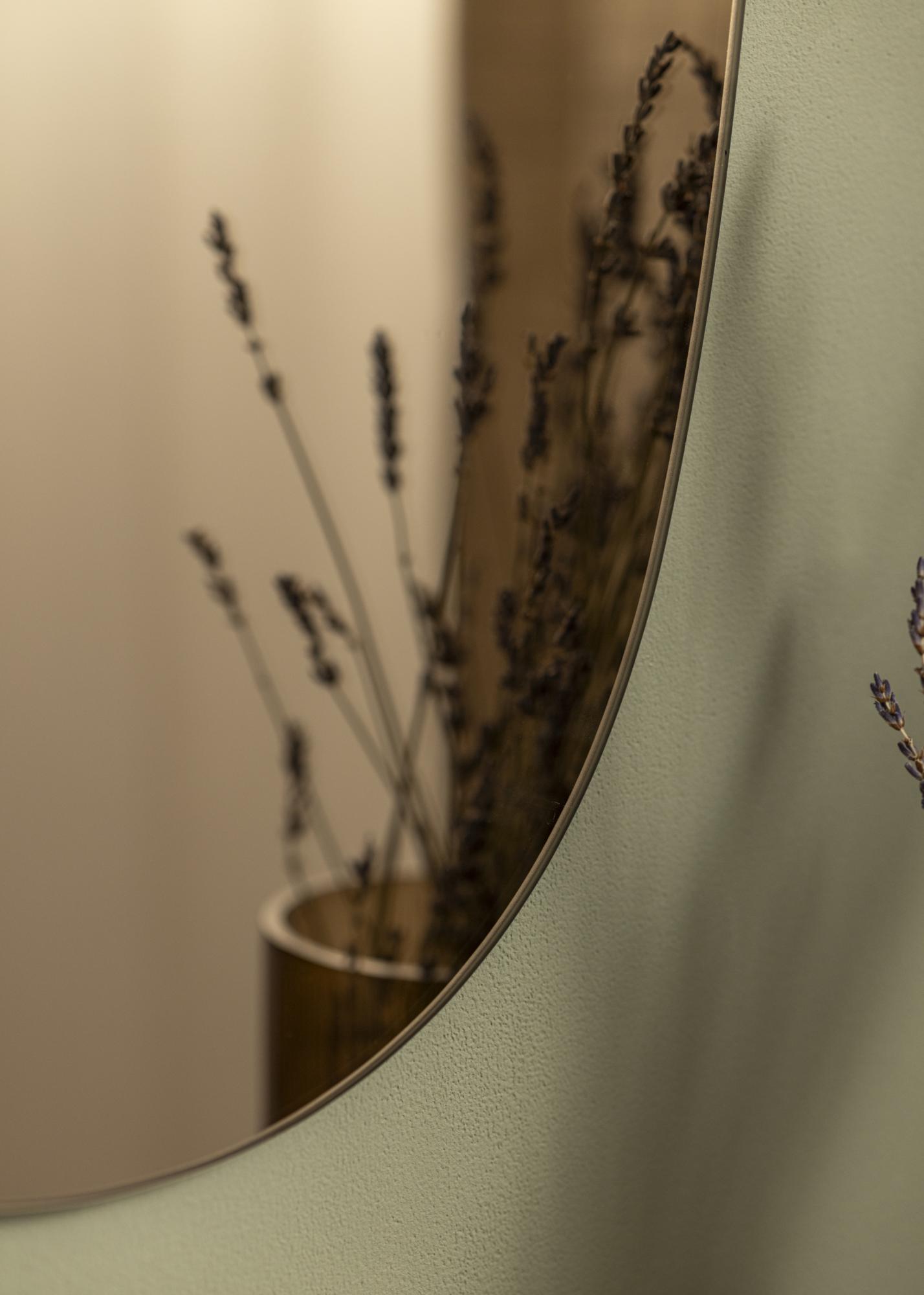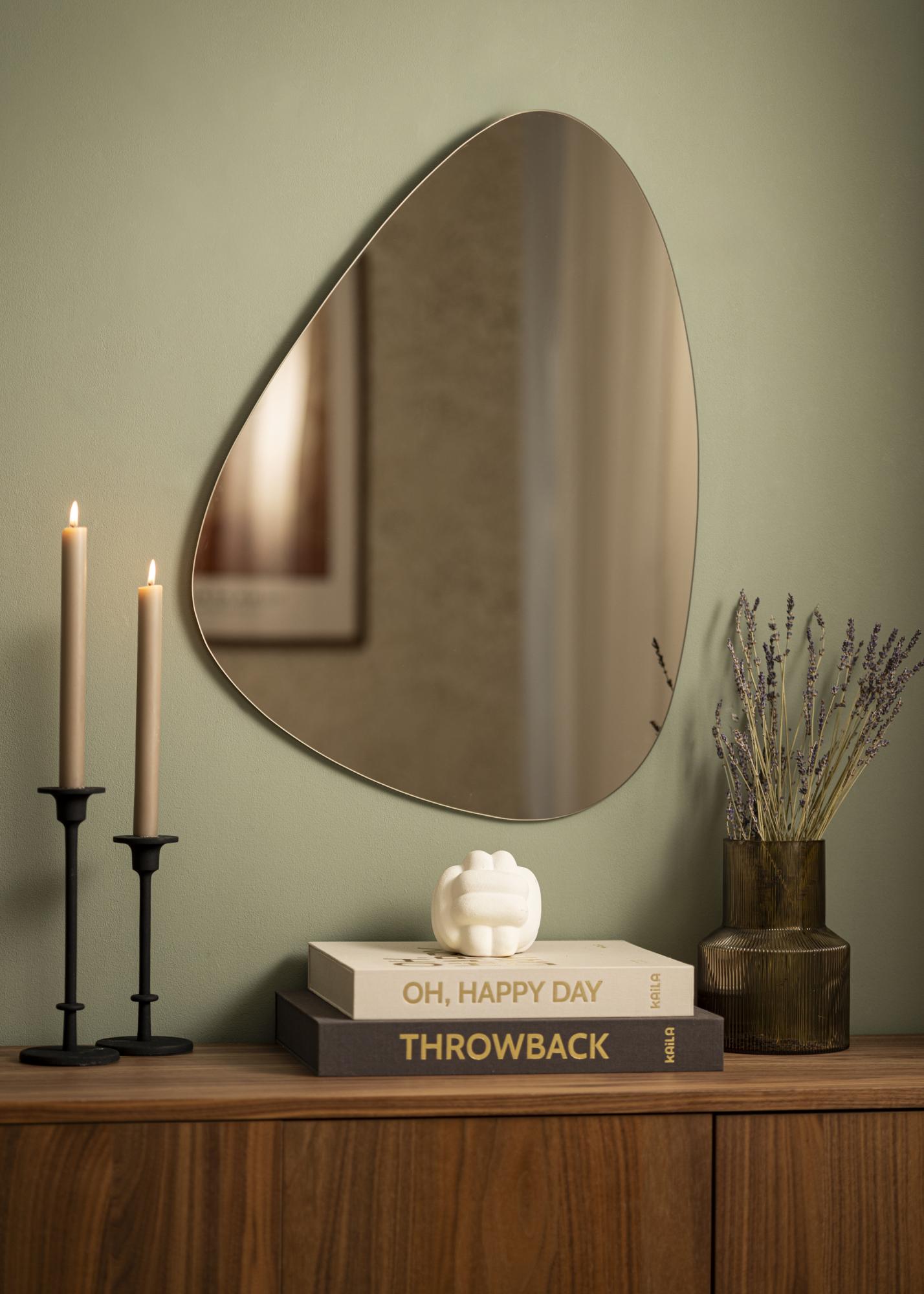 Ez az aszimmetrikus tükör igazán feltűnő és trendi lakberendezési elem lesz az otthonodban! Az érdekes tojás alakú dizájn mellett, ez a tükör elegáns bronz árnyalatú tükörüveggel rendelkezik, amely tovább erősíti a modern megjelenést, és szépen harmonizál számos különböző színsémával. A lágy forma, kombinálva azzal a ténnyel, hogy a tükör nagyon vékony és nincs kerete, ritka eleganciát és finom érzést kölcsönöz. Tökéletes funkcionális és trendi faldekorációként a nappaliban, előszobában vagy hálószobában.